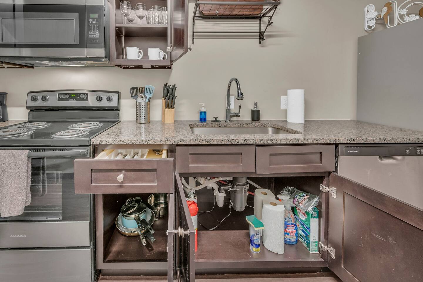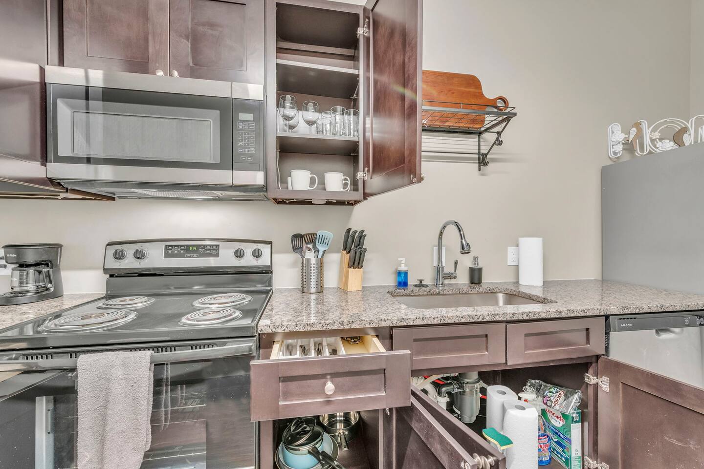 Experience comfort and convenience in this charming ground-floor 1-bedroom apartment, ideally located just minutes from the airport. Perfect for travelers, this inviting space offers everything you need for a relaxing stay. Apartment Features: ✅Bedroom: The bedroom features a cozy queen-sized bed, ensuring a restful night’s sleep with soft linens and ample pillows. A spacious closet provides plenty of room for your luggage and belongings. ✅Living Area: Step into the open-concept living area, designed for relaxation and socializing. Comfortable seating invites you to unwind after a long day, and the space is perfect for enjoying your favorite shows or reading a book. ✅Dining and Kitchen: The dining area flows seamlessly from the living space, accommodating up to four guests. The fully equipped kitchen includes modern appliances—such as a refrigerator, stove, microwave, and dishwasher—along with essential cookware and utensils, making it easy to prepare meals. ✅Bathroom: The apartment features a clean and well-maintained bathroom with a shower/tub combination. Fresh towels and essential toiletries are provided, and the in-unit washer and dryer offer the convenience of laundry during your stay. Amenities: ✅Free Parking: Enjoy the convenience of free parking within the building complex, making your arrivals and departures hassle-free. ✅Wi-Fi: Stay connected with complimentary high-speed Wi-Fi available throughout the apartment. ✅Climate Control: The unit is equipped with heating and air conditioning to ensure your comfort in any season. ✅Location: Situated in a quiet, safe neighborhood, this apartment is just a short drive from the airport, making it an ideal choice for travelers. Explore nearby attractions, dining, and shopping options—all within easy reach. Additional Information: ✅Check-in: 5 PM ✅Check-out: 11 AM ✅Pets allowed ✅Non-smoking unit Book your stay in this cozy ground-floor apartment today and enjoy the perfect blend of comfort, accessibility, and convenience!