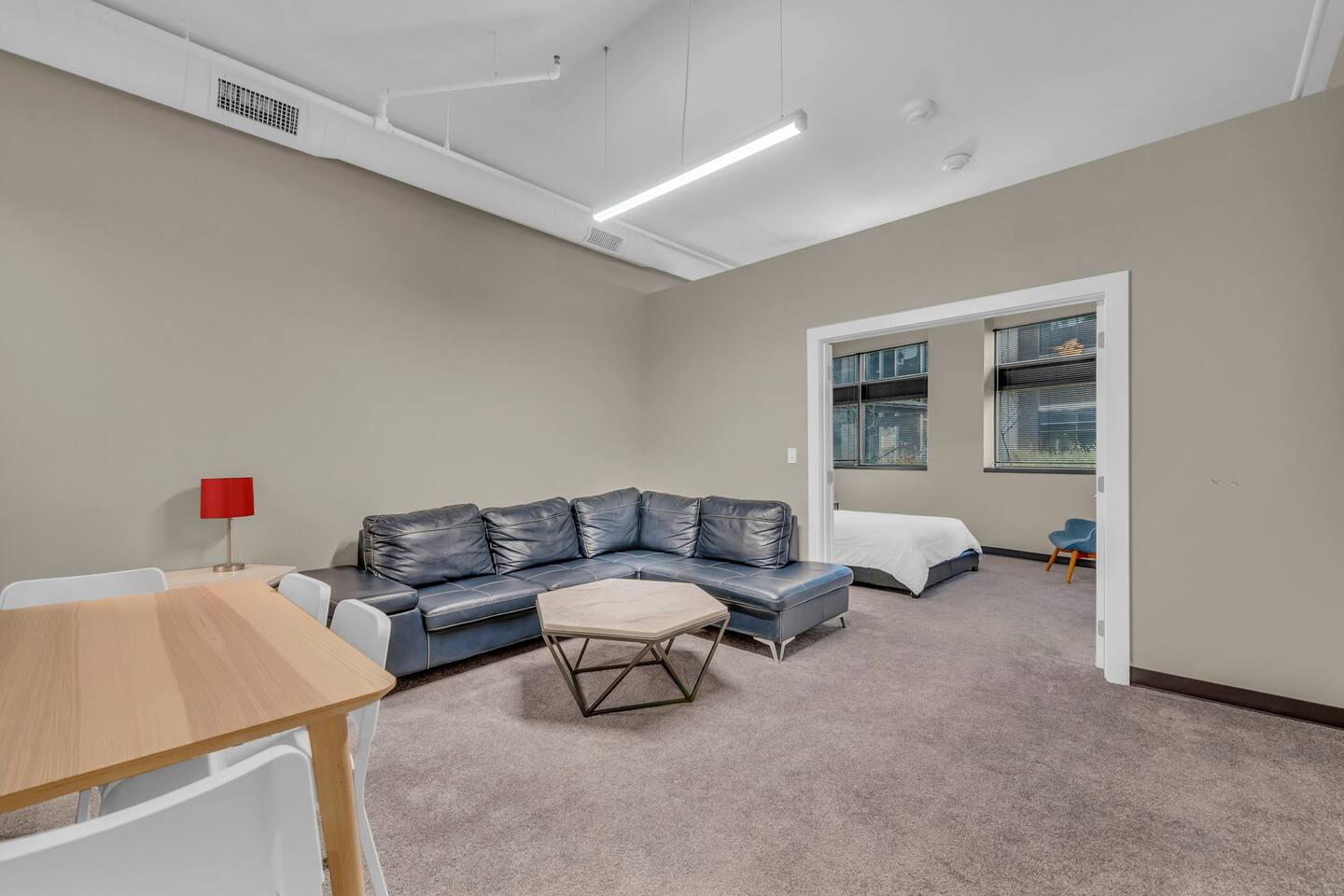 Welcome to your ground-floor 1-bedroom apartment near the airport! This inviting space features a comfortable queen-sized bed and an open-concept layout that seamlessly connects the living room, dining area, and kitchen. Enjoy modern amenities in the fully equipped kitchen and a bathroom complete with a washer and dryer for added convenience. With free parking available in the building complex, hassle-free. Perfect for travelers seeking comfort and accessibility. Book now for a relaxing getaway!