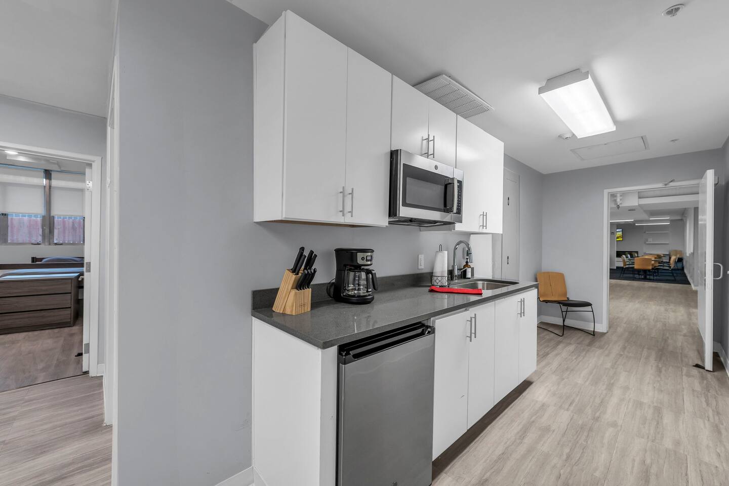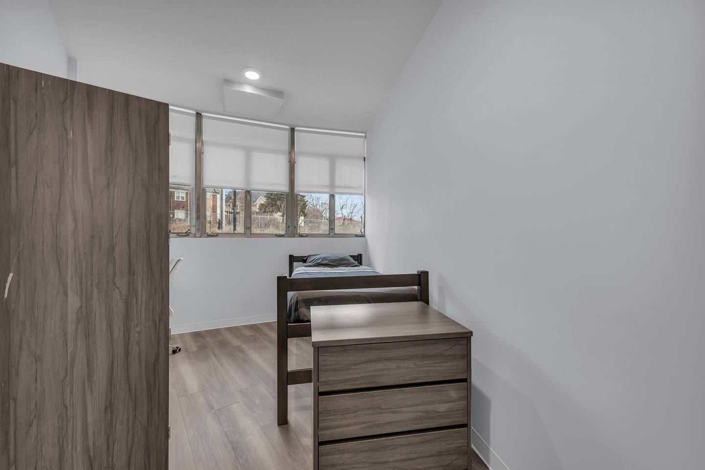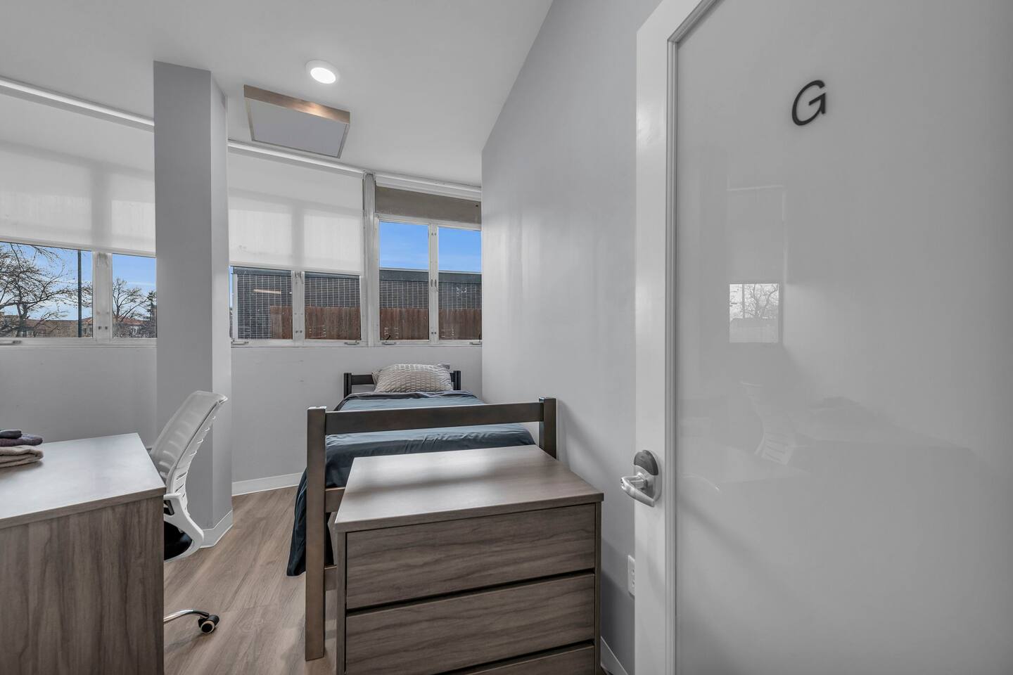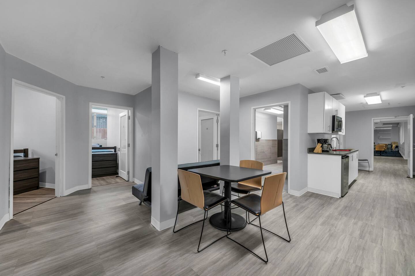 ✅Location: Perfect for students, traveling nurses, & professionals, situated between Rockhurst University (across the street) and UMKC (2 blocks away). ✅Bedrooms: 8 spacious rooms, each with a twin bed. This pod can accommodate 1 guest per room for a total of up to 8 guests for this pod. ✅Work/Study spaces: Each room includes dedicated work/study areas. ✅Bathroom: communal-style bathroom with multiple stalls, shower area, and bathroom sink. ✅Kitchenette: The pod has a microwave, minifridge, and a coffeemaker. ✅Parking: Free open parking within the building complex right in front of the building. Not covered and unnumbered. ✅Shared Spaces: Includes a communal living area and a fully equipped shared kitchen with a stove, oven, and washer and dryer. ✅Shared Communal Restroom in the building: It features 2 shower stalls, 3 toilet stalls, and 3 sinks. ✅Ideal For Student-friendly living, study environment, traveling nurses, and professionals.