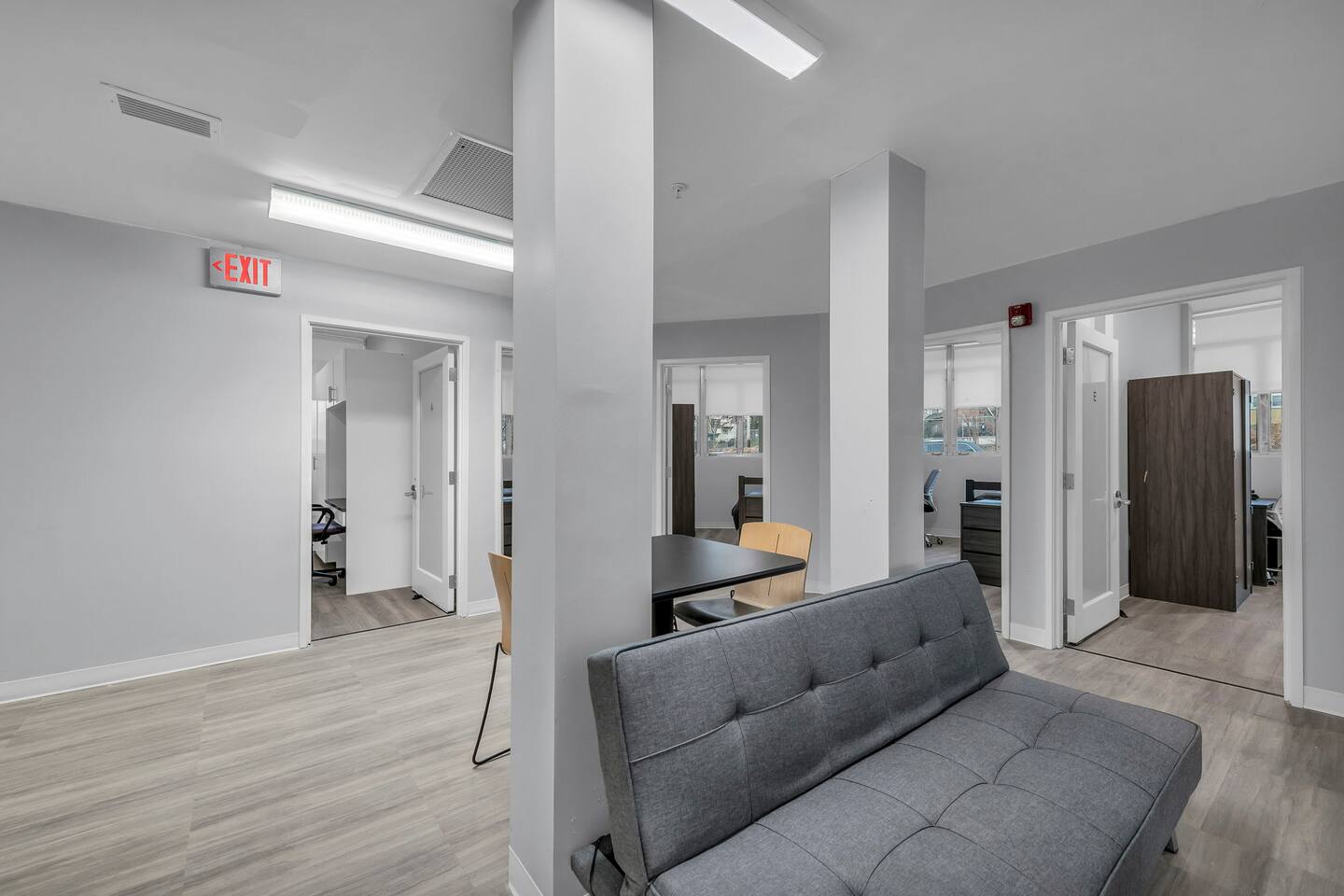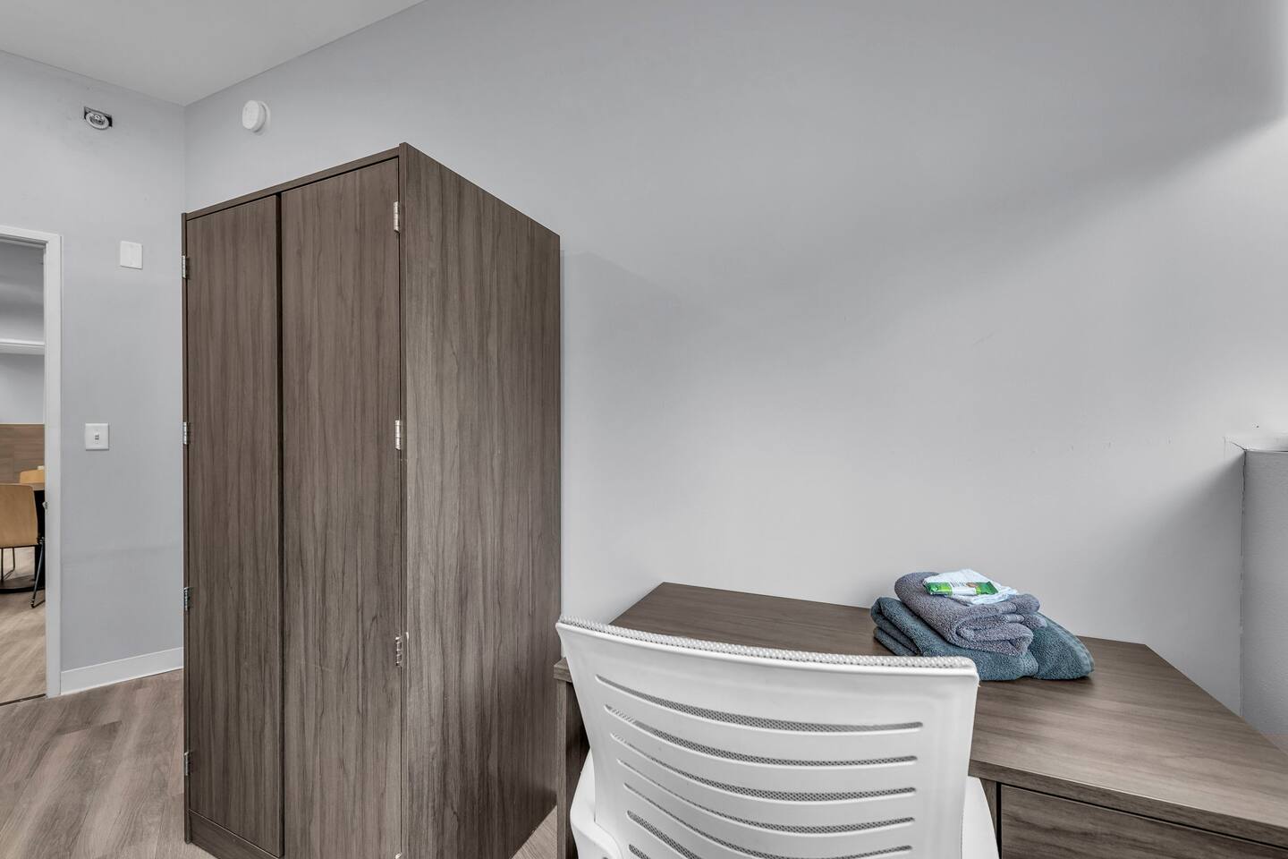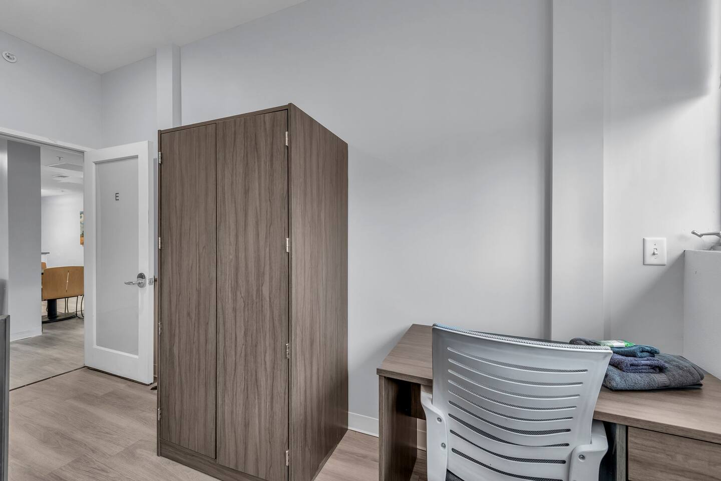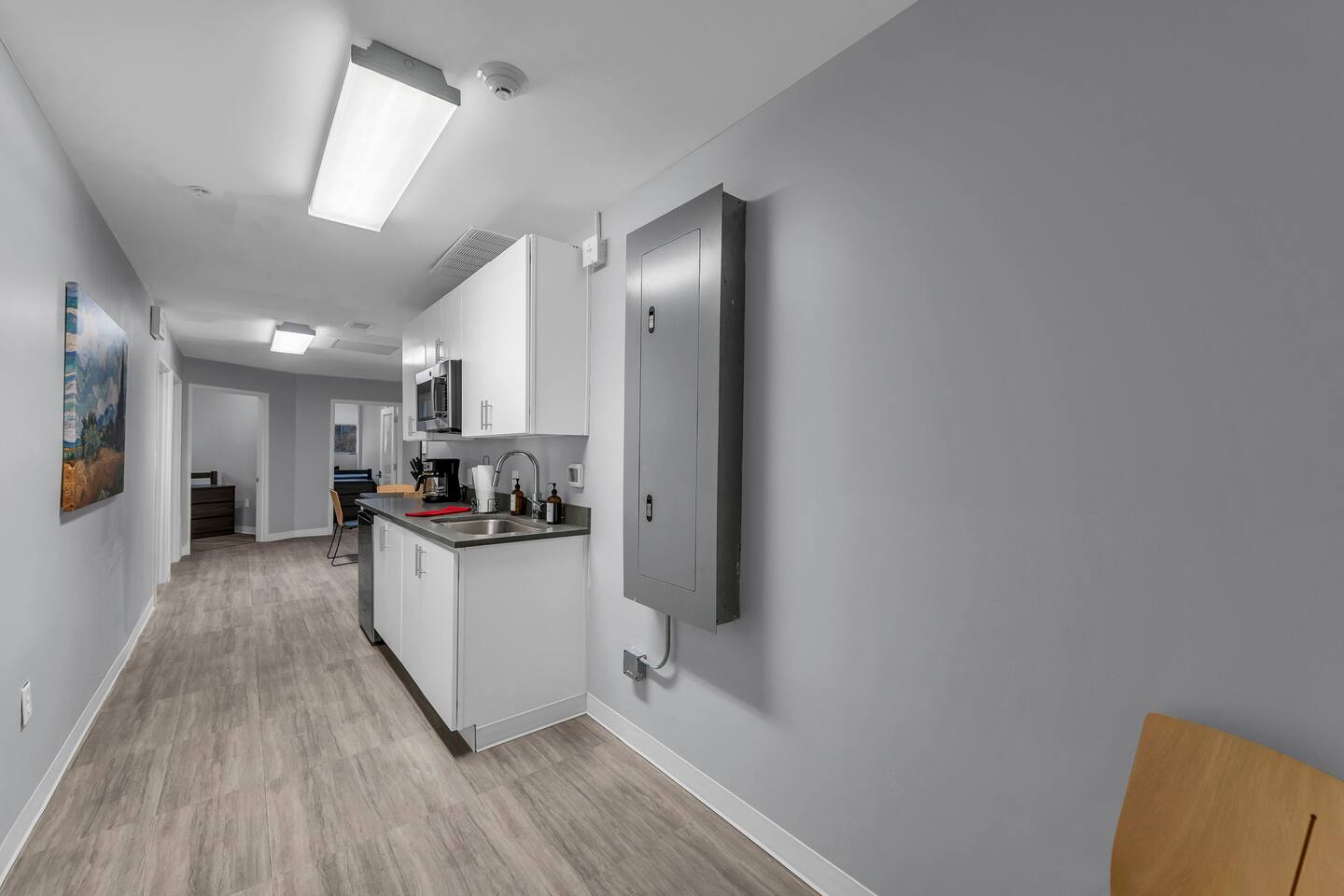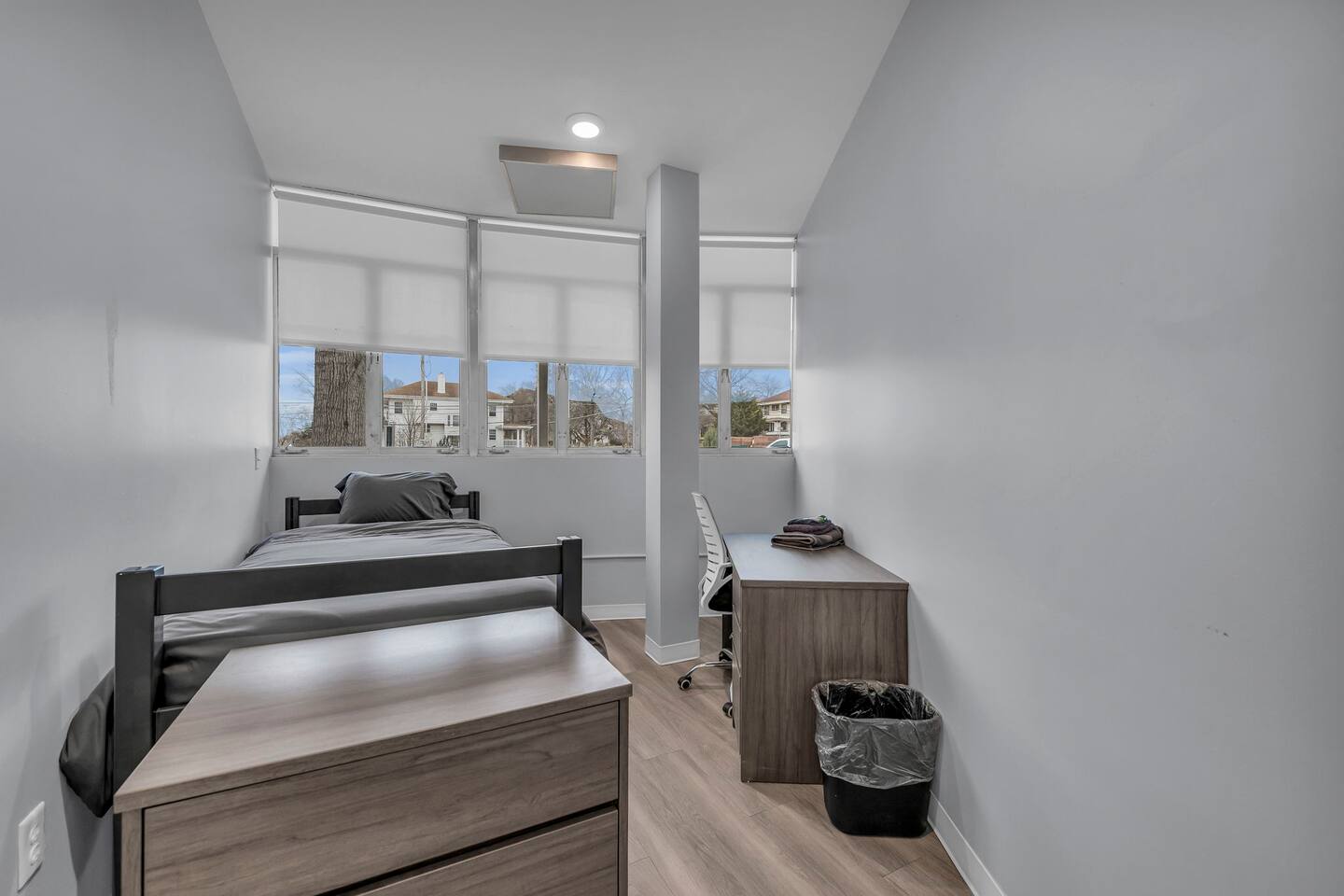 ✅Location: Perfect for students, traveling nurses, & professionals, situated between Rockhurst University (across the street) and UMKC (2 blocks away). ✅Bedrooms: 8 spacious rooms, each with a twin bed. This pod can accommodate 1 guest per room for a total of up to 8 guests for this pod. ✅Work/Study spaces: Each room includes dedicated work/study areas. ✅Bathroom: communal-style bathroom with multiple stalls, shower area, and bathroom sink. ✅Kitchenette: The pod has a microwave, minifridge, and a coffeemaker. ✅Parking: Free open parking within the building complex right in front of the building. Not covered and unnumbered. ✅Shared Spaces: Includes a communal living area and a fully equipped shared kitchen with a stove, oven, and washer and dryer. ✅Shared Communal Restroom in the building: It features 2 shower stalls, 3 toilet stalls, and 3 sinks. ✅Ideal For Student-friendly living, study environment, traveling nurses, and professionals.
