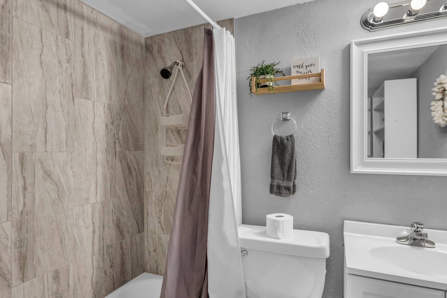 Welcome to our spacious 3-bedroom apartment, a perfect retreat for your getaway! With 1 full bath, unwind in comfort and style. Rest easy in the master suite's luxurious king bed, while two queen bedrooms offer cozy tranquility. Need extra space? The convenient sofa bed is here for you. Entertainment abounds with two 55-inch and 42-inch Roku TVs. Our prime location offers easy access to local attractions and dining. Come experience relaxation and convenience in our charming apartment.