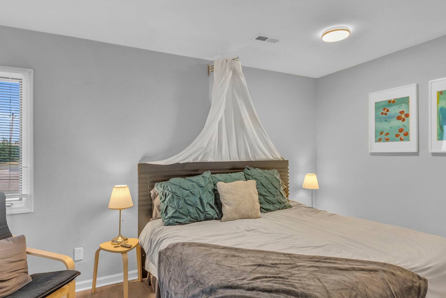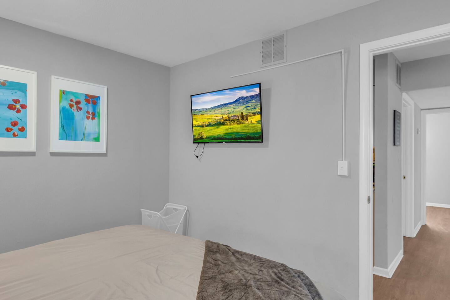 Experience comfort and sophistication in our 3-bedroom apartment, complete with a well-equipped kitchenette. The open-concept layout welcomes you into a spacious living area adorned with modern decor and ample seating. Indulge in peaceful slumber in the master suite's lavish king bed, while two queen bedrooms offer serene respites. The shared full bath exudes elegance and is stocked with essentials for your convenience. Entertainment options abound with two Roku TVs, a 55-inch and a 42-inch, offering a wide array of streaming choices for cozy movie nights. Our kitchenette, though not full-sized, is thoughtfully stocked with a coffee maker and microwave, perfect for preparing light meals and enjoying morning brews. Situated in a vibrant neighborhood, you'll enjoy easy access to local attractions and dining. Whether you're seeking relaxation or adventure, our apartment promises a memorable stay filled with comfort and convenience. Your home away from home awaits your arrival.