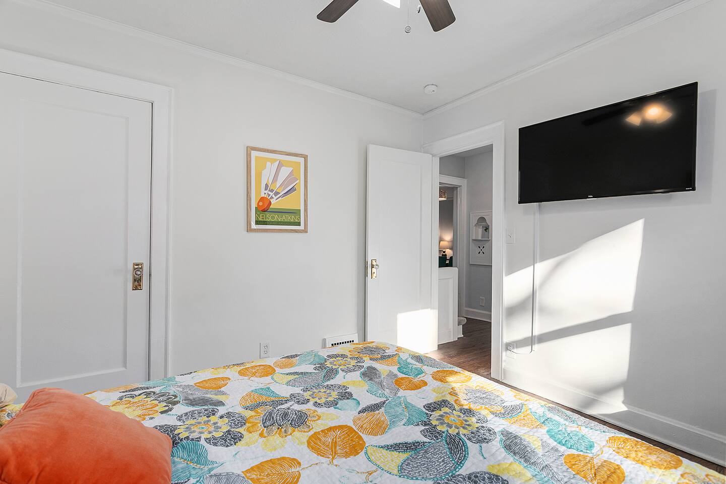 You will love the comfort and charm of this beautifully refinished & warm feeling home nestled in an absolutely quaint, established, and quiet neighborhood in one of Waldo's most sought after areas. Special attention paid to stylish top notch furnishings that really sets this property apart from others. You will be able to enjoy a fully equipped kitchen, a formal dining area, along with the opportunity to dine outside on the back deck. This house has 3 bedrooms + 2 full Bathrooms. Bedrooms/Beds: 1. 1 King Bed 2. 1 Queen Bed 3. 2 Twin Beds House Features ✔ Luxurious Beds ✔ Working Desk w/ Chair ✔ Free Wifi ✔ In home Washer & Dryer ✔ 50 inch mounted Roku TV in living room ✔ 43 Inch mounted Roku in Master Bedroom ✔ 43 inch mounted Roku TV in queen bedroom ✔ USB outlets ✔ blackout curtains for privacy ✔ Coffee/Coffee Maker ✔ Iron/Iron Board ✔ Hair dryer ✔ pack and play with bedding ✔ highchair with bibs and dishes ✔ board/card games ✔ luggage racks in each bedroom We have plenty of new towels, extra blankets, extra linens, washer and dryer, plus we have the best property management team who is always just one airbnb message away! In the immediate area full shops, grocery stores, gas stations, food, interstate, etc. Close to everything! You can't do better for your next trip to KC :)