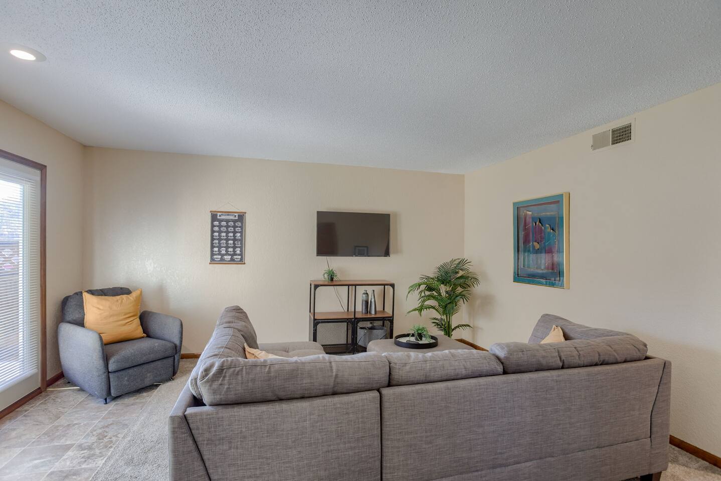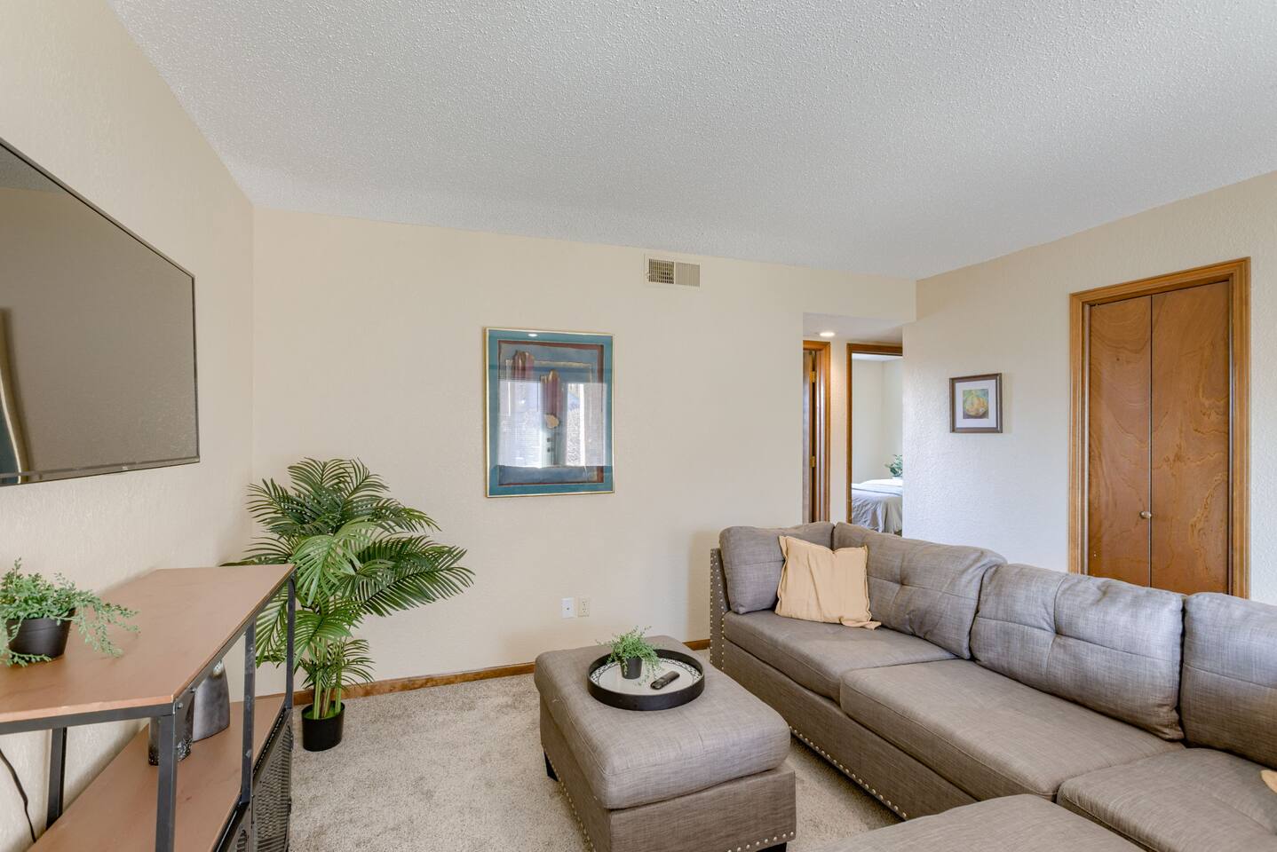 Welcome to the Aviator's Lounge, a spacious 2-bedroom apartment near the airport. Each bedroom features a comfortable queen bed, perfect for restful nights. The unit is equipped with a washer and dryer for your convenience, making it ideal for longer stays. Families will appreciate the high chair, making it a great choice for those traveling with kids. With a stylish living area, modern amenities, and a prime location, this apartment offers the perfect blend of comfort and practicality.