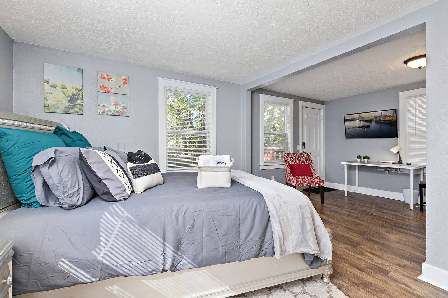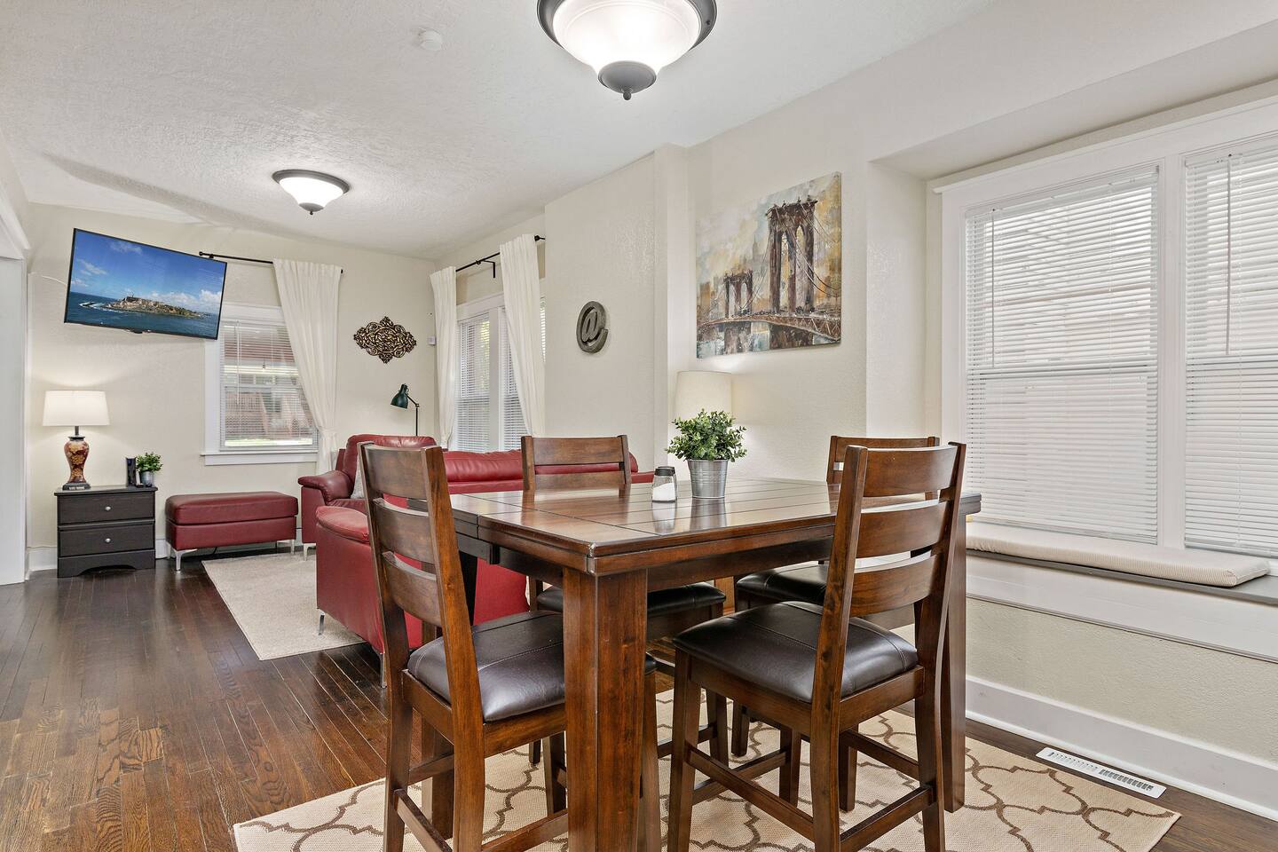 ✦There are two bedrooms in the main floor and 3 more upstairs. ✦This is a duplex. Your entrance to the duplex is out front and the tenant below has their entrance at the back. Please do not go to the back to enter your apartment. ✦Maintenance staff are available to respond to your needs. ✦Security staff are available to respond as the need arises. ✦I am greatly looking forward to you enjoying your stay in Kansas City! This is an entire home and there is an apartment at the back too which is separate from this listing. Their entrance is on the side going to the back.