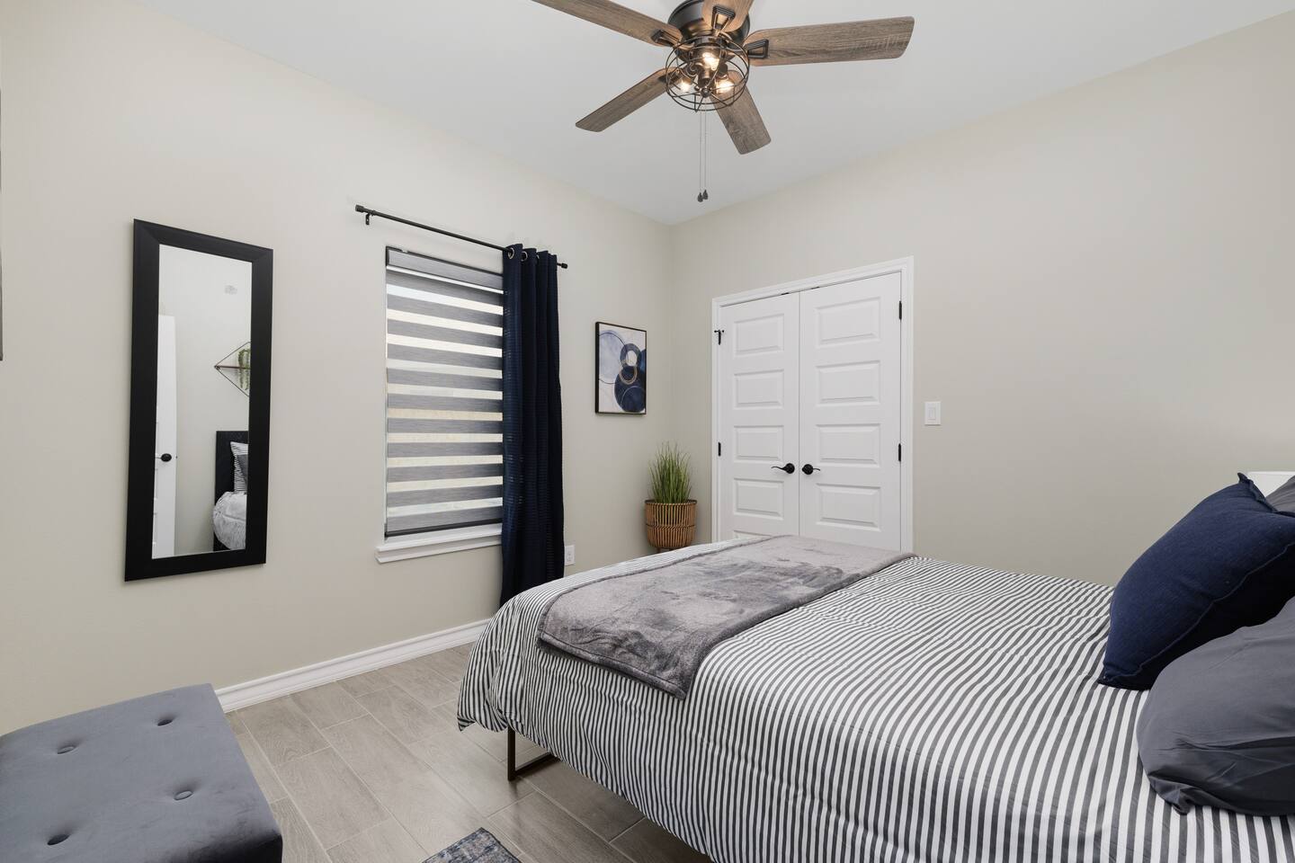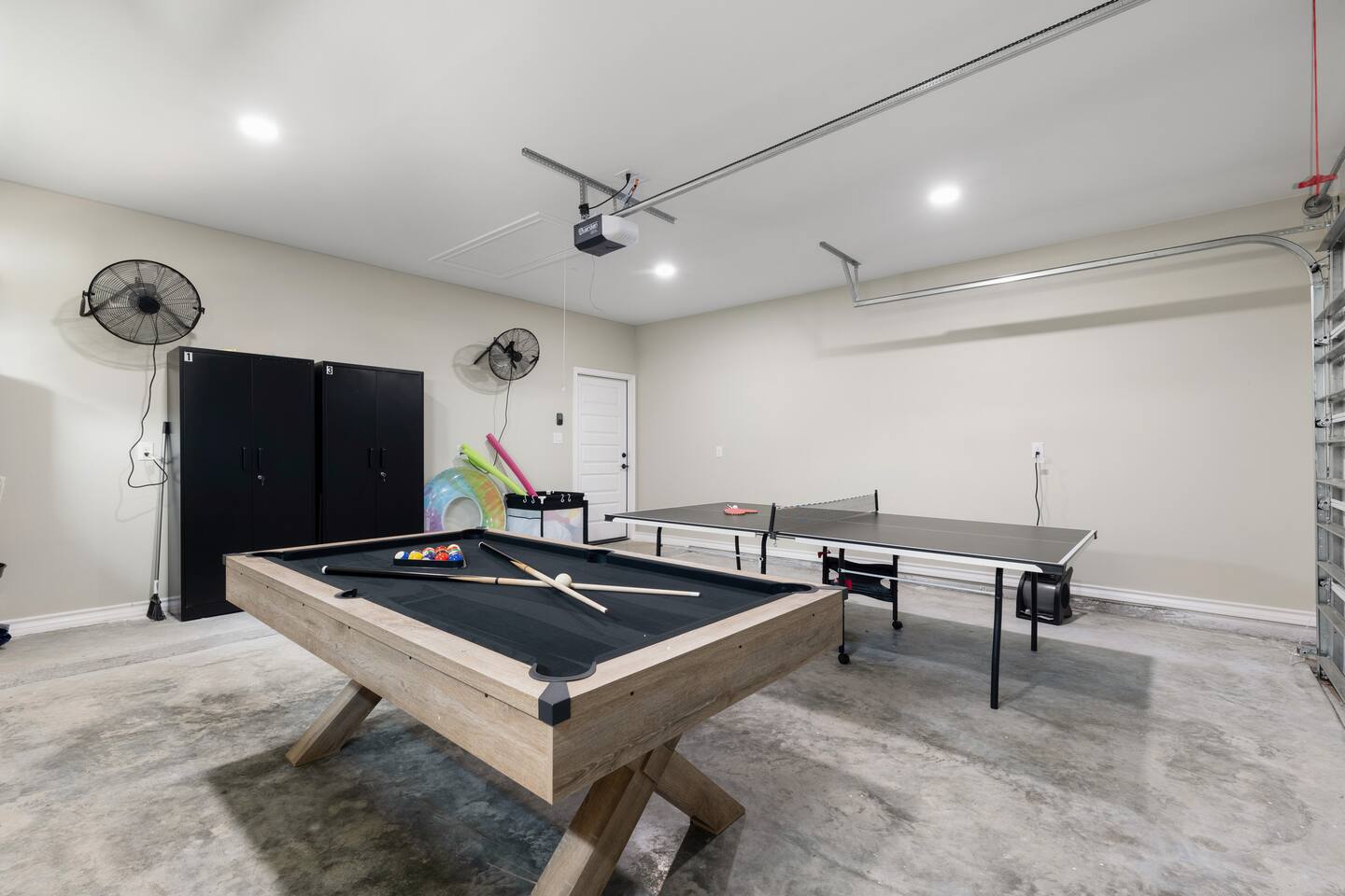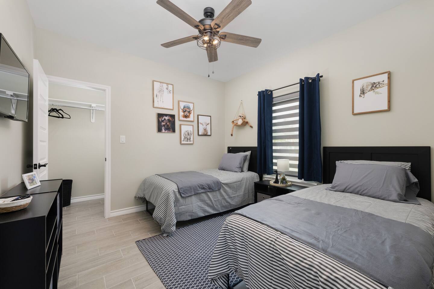 Key Features: Spacious Accommodations: 4 Bedrooms: 1 King bed 2 Queen beds 2 Twin beds Sleeps up to 8 guests comfortably. Entertainment: Enjoy movie nights with 4 TVs located throughout the house, perfect for unwinding after a day of adventure. Convenient Layout: Everything is on one level—no stairs to navigate! Two full bathrooms, both equipped with showers for your convenience. Fully Equipped Kitchen: Prepare meals with ease in the well-equipped kitchen, and enjoy dining together in the spacious living areas. Outdoor Oasis: Step outside to your fully fenced backyard, where you can take a refreshing dip in your private swimming pool—perfect for sunny days! Fun & Games: The garage is set up for gaming, providing a fun space for everyone to enjoy. Parking: Off-street parking is available in the driveway for your convenience. Laundry Facilities: A washer and dryer are available in the laundry room, making it easy to keep your clothes fresh during your stay.