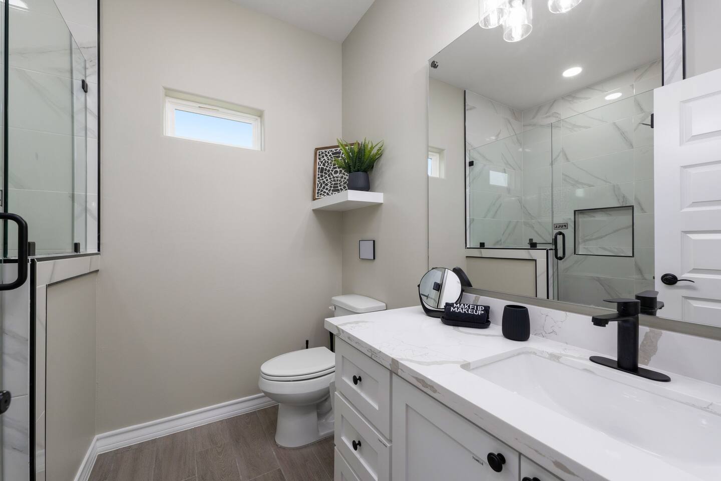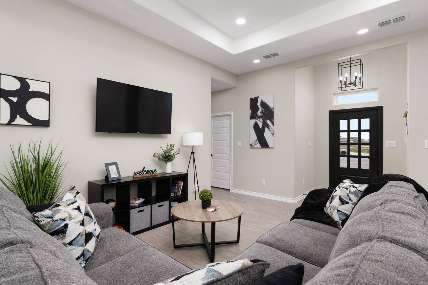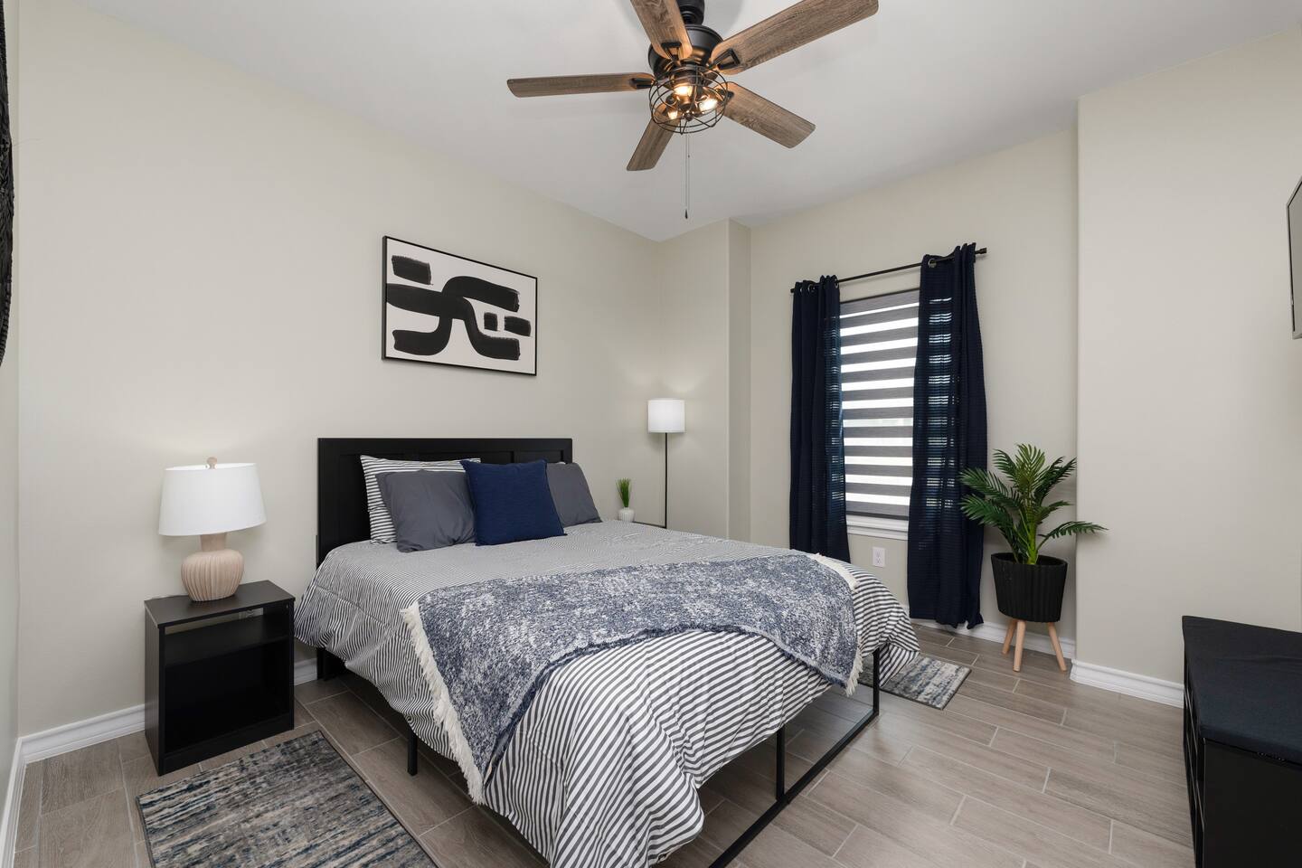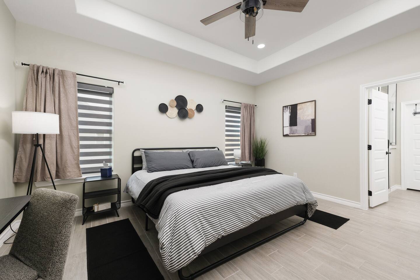 Key Features: Spacious Accommodations: 4 Bedrooms: 1 King bed 2 Queen beds 2 Twin beds Sleeps up to 8 guests comfortably. Entertainment: Enjoy movie nights with 4 TVs located throughout the house, perfect for unwinding after a day of adventure. Convenient Layout: Everything is on one level—no stairs to navigate! Two full bathrooms, both equipped with showers for your convenience. Fully Equipped Kitchen: Prepare meals with ease in the well-equipped kitchen, and enjoy dining together in the spacious living areas. Outdoor Oasis: Step outside to your fully fenced backyard, where you can take a refreshing dip in your private swimming pool—perfect for sunny days! Fun & Games: The garage is set up for gaming, providing a fun space for everyone to enjoy. Parking: Off-street parking is available in the driveway for your convenience. Laundry Facilities: A washer and dryer are available in the laundry room, making it easy to keep your clothes fresh during your stay.