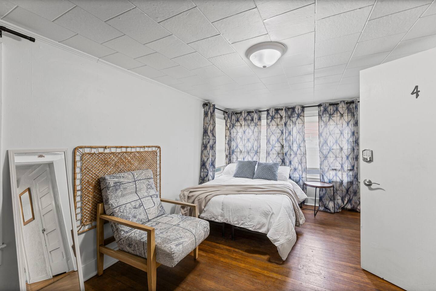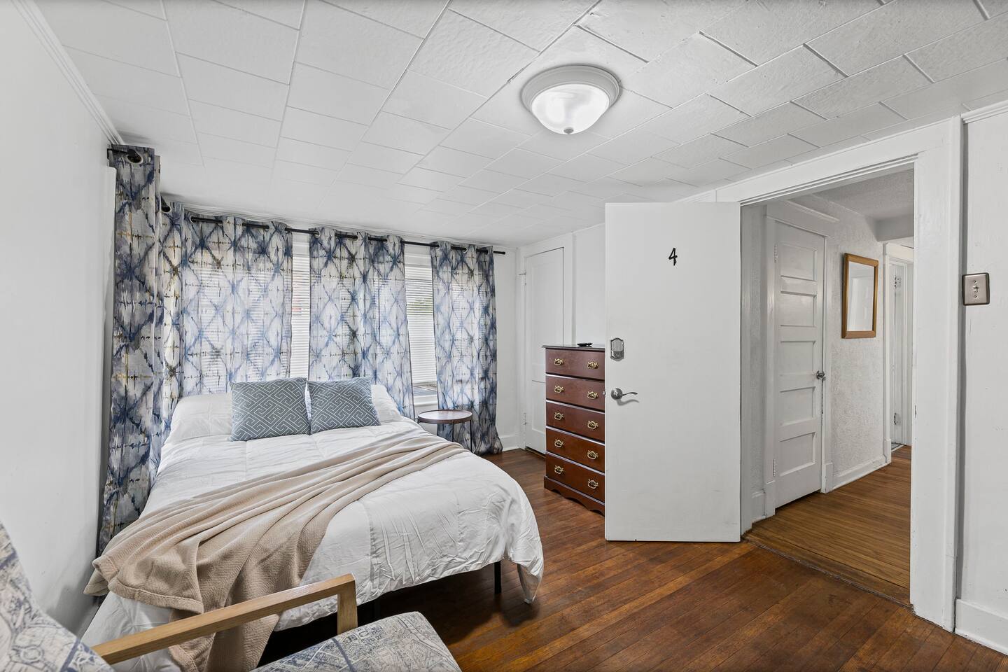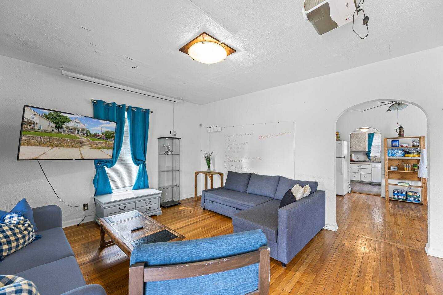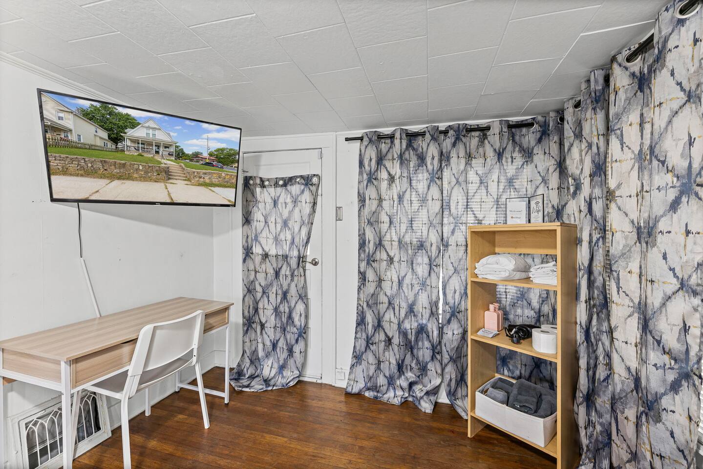 Enjoy a stylish private upstairs room with a queen-size bed, fresh linens, HD Roku TV, and your own private balcony. A dedicated desk & high-speed WiFi make it ideal for work, study, or leisure. Guests share a full bathroom upstairs plus access to the living room, dining area, kitchen, porch swing, & basement laundry. All surfaces are disinfected between stays. On-street parking is available, and Kansas City’s best spots—Westport, Plaza, Power & Light, River Market—are just 15 minutes away.