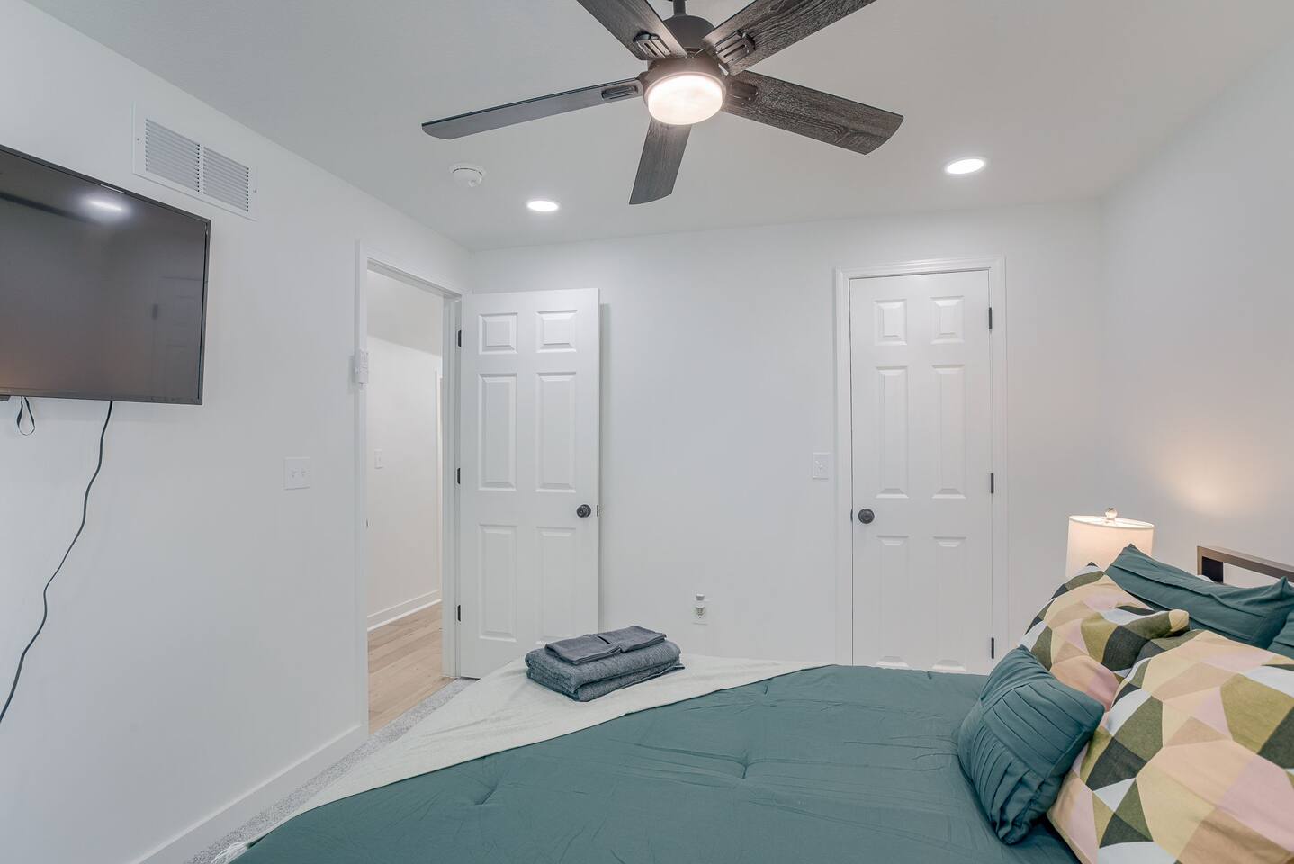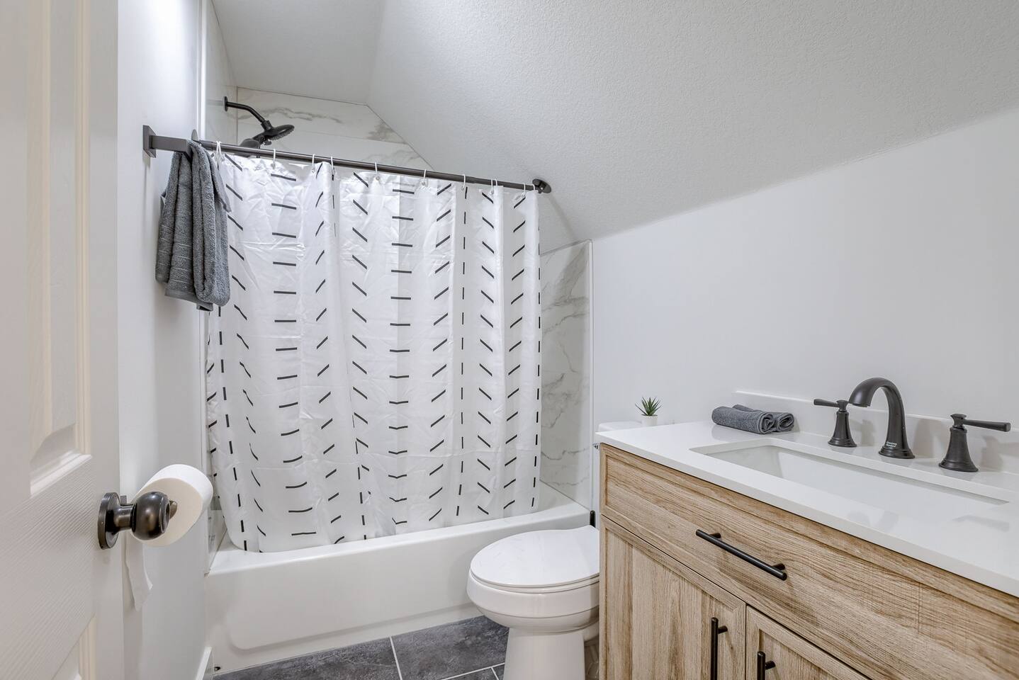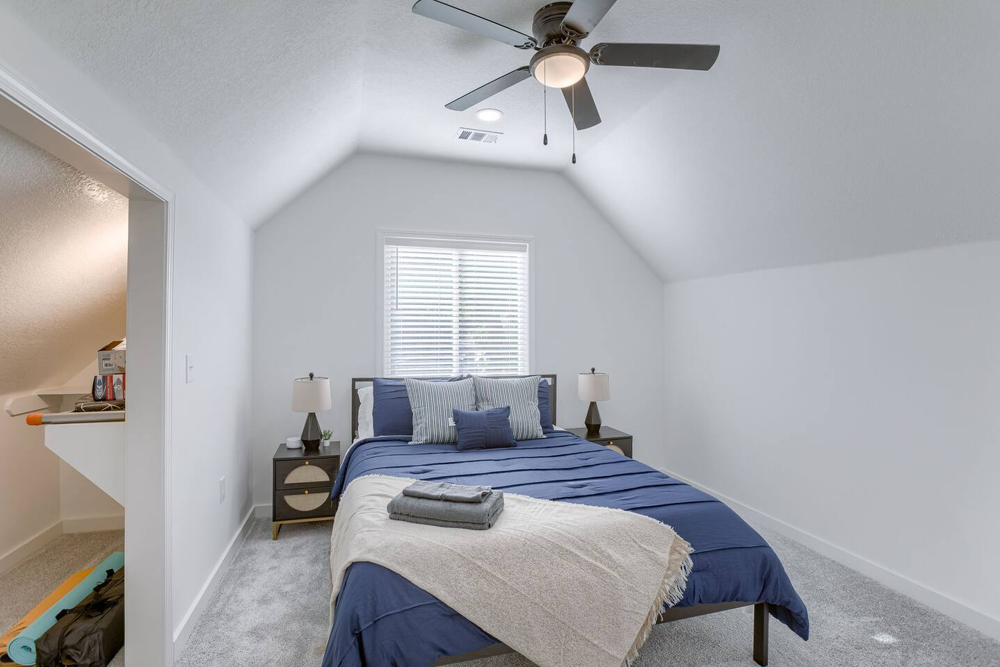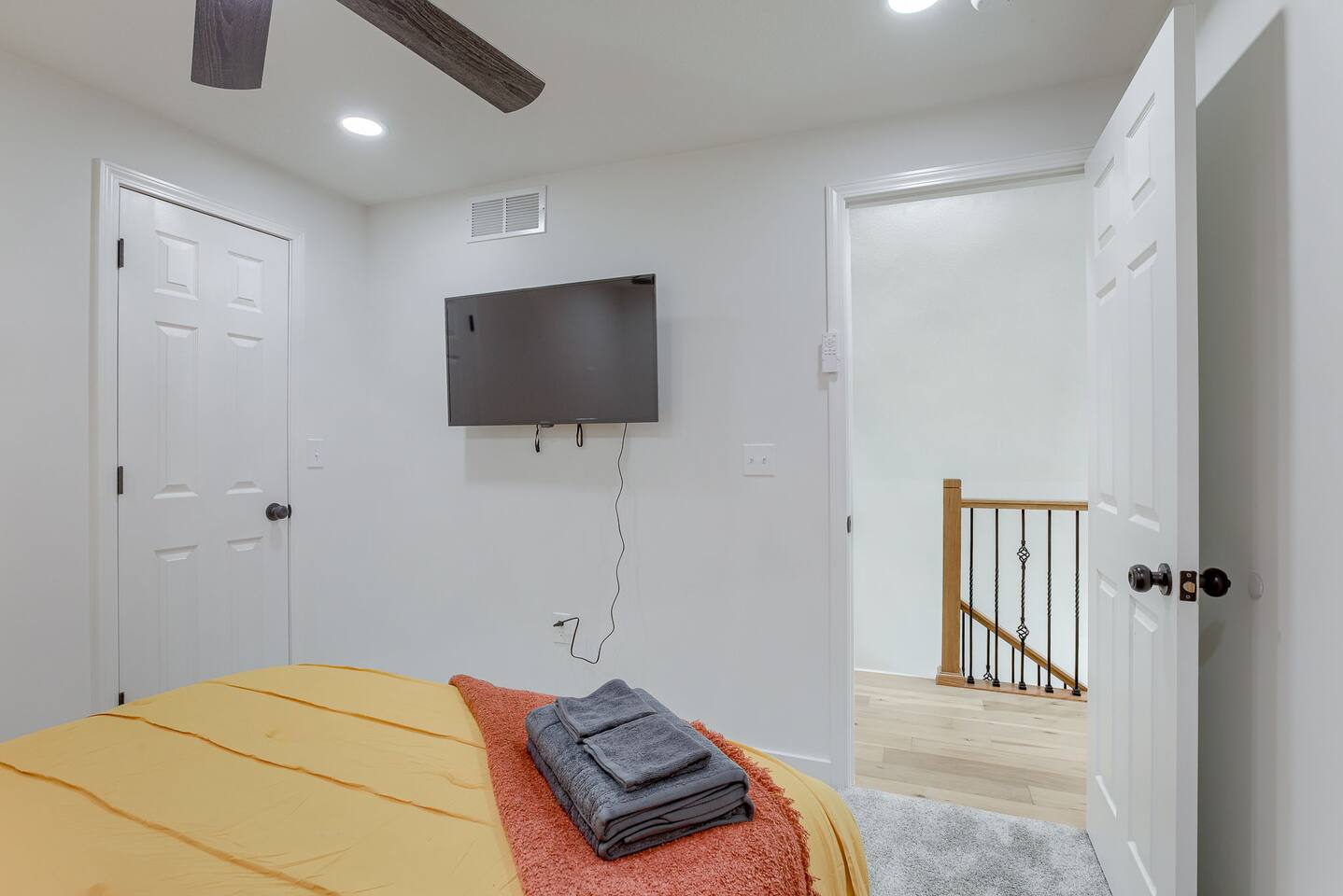 Welcome to our inviting and spacious home, thoughtfully designed to offer comfort, relaxation, and outdoor enjoyment. Whether you’re here for a family getaway or a peaceful retreat, we’ve provided everything to ensure a pleasant stay. Bedrooms: Upstairs, you’ll find three beautifully furnished bedrooms, each equipped with a cozy queen-sized bed to provide a restful night’s sleep. One of the bedrooms comes with a TV for entertainment, perfect for unwinding after a long day of activities. The layout ensures ample space and privacy for every guest, creating a serene sleeping environment. Bathrooms: Two full bathrooms are located upstairs in each of the 2 bedrooms out of 3 bedrooms, making morning routines a breeze. Each bathroom is equipped with all the essentials you need for a comfortable stay. Additionally, there is a half bathroom located on the ground floor, offering quick and easy access. Living Room: The living room serves as the central gathering space of the house. It’s furnished with comfortable seating, making it ideal for watching TV, playing games, or simply relaxing with your loved ones. The open and welcoming layout encourages interaction and togetherness. We also have an arcade game machine, adding a fun and nostalgic touch to the space. We have one air mattress that the 7th guest can use in the living room. It is in one of the bedroom closets. Backyard and Outdoor Amenities: Step outside into a fully fenced backyard designed for outdoor relaxation and entertainment. The patio is equipped with comfortable sitting chairs and features a fire pit at its center, perfect for outdoor dining or simply enjoying a sunny day. The natural surroundings and fenced yard ensure privacy and peace during your stay. Back Deck: One of the upstairs bedrooms opens out onto a lovely back deck, complete with wooden railings and additional seating. This is the perfect spot to sip your morning coffee while soaking in the peaceful surroundings, or enjoy a quiet evening under the stars. Parking: For your convenience, parking is available in the driveway, ensuring easy access to the property throughout your stay. There are also plenty of free street parking around the area. Just make sure to read the parking and traffic rules. Our home combines comfort with outdoor charm, making it the perfect space to relax and enjoy quality time with friends or family. We hope you have a wonderful stay!