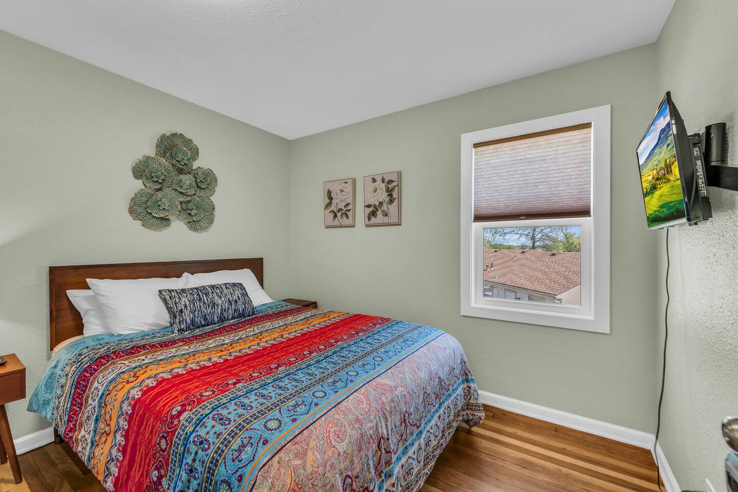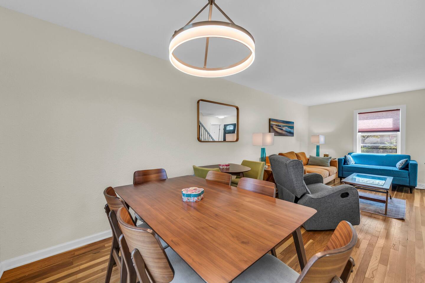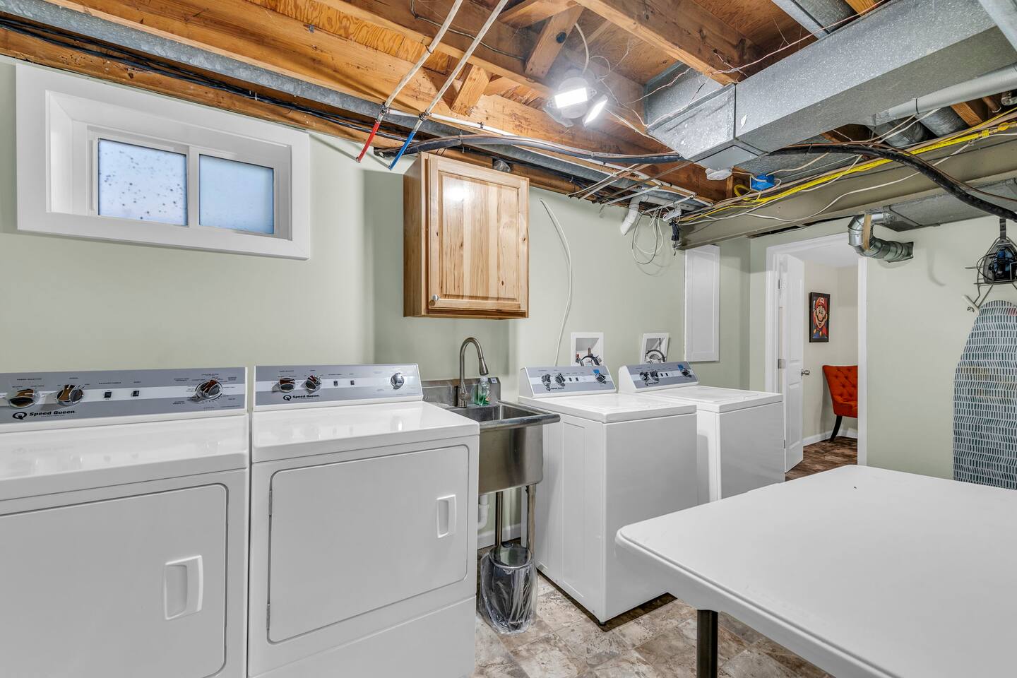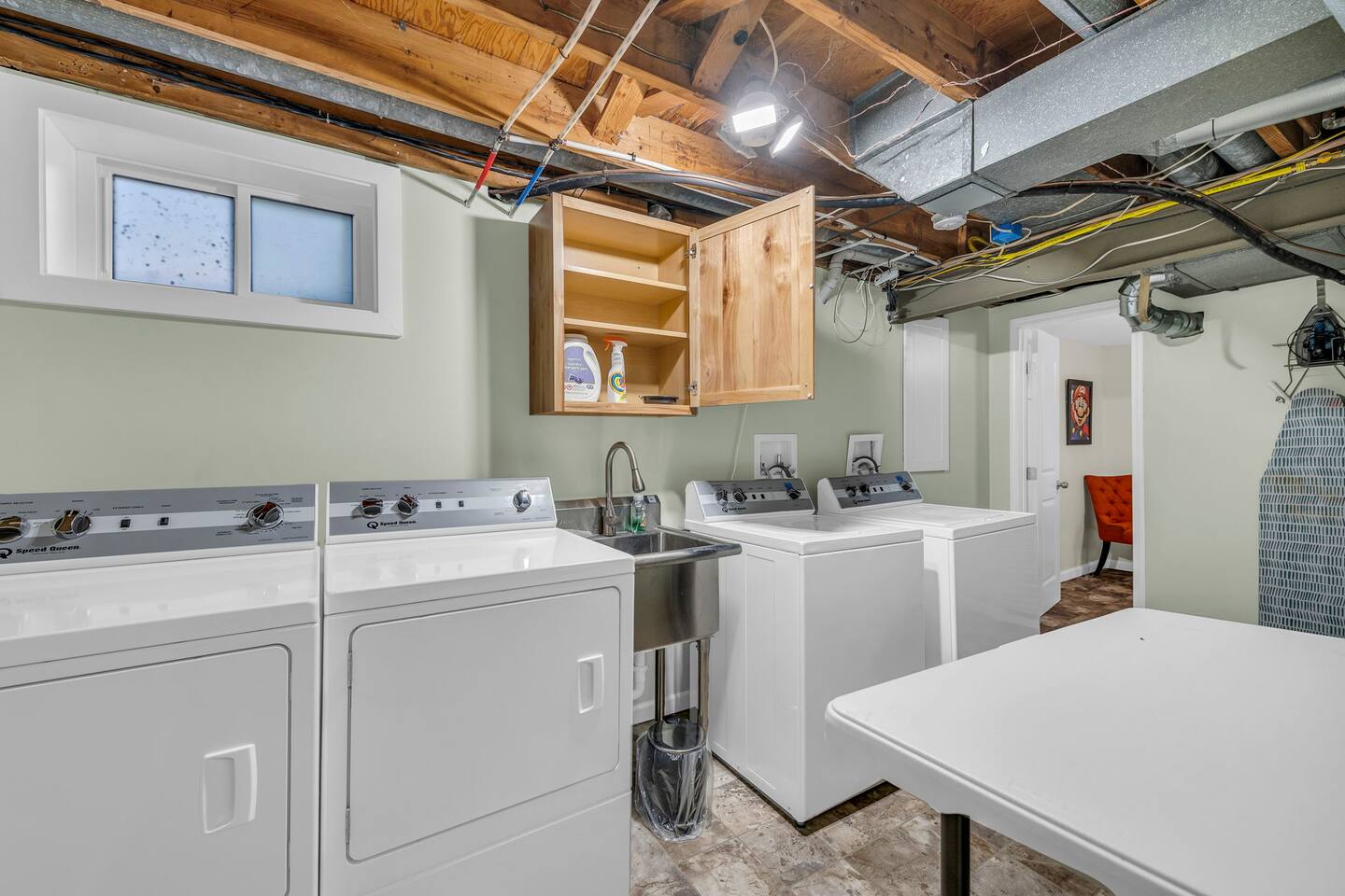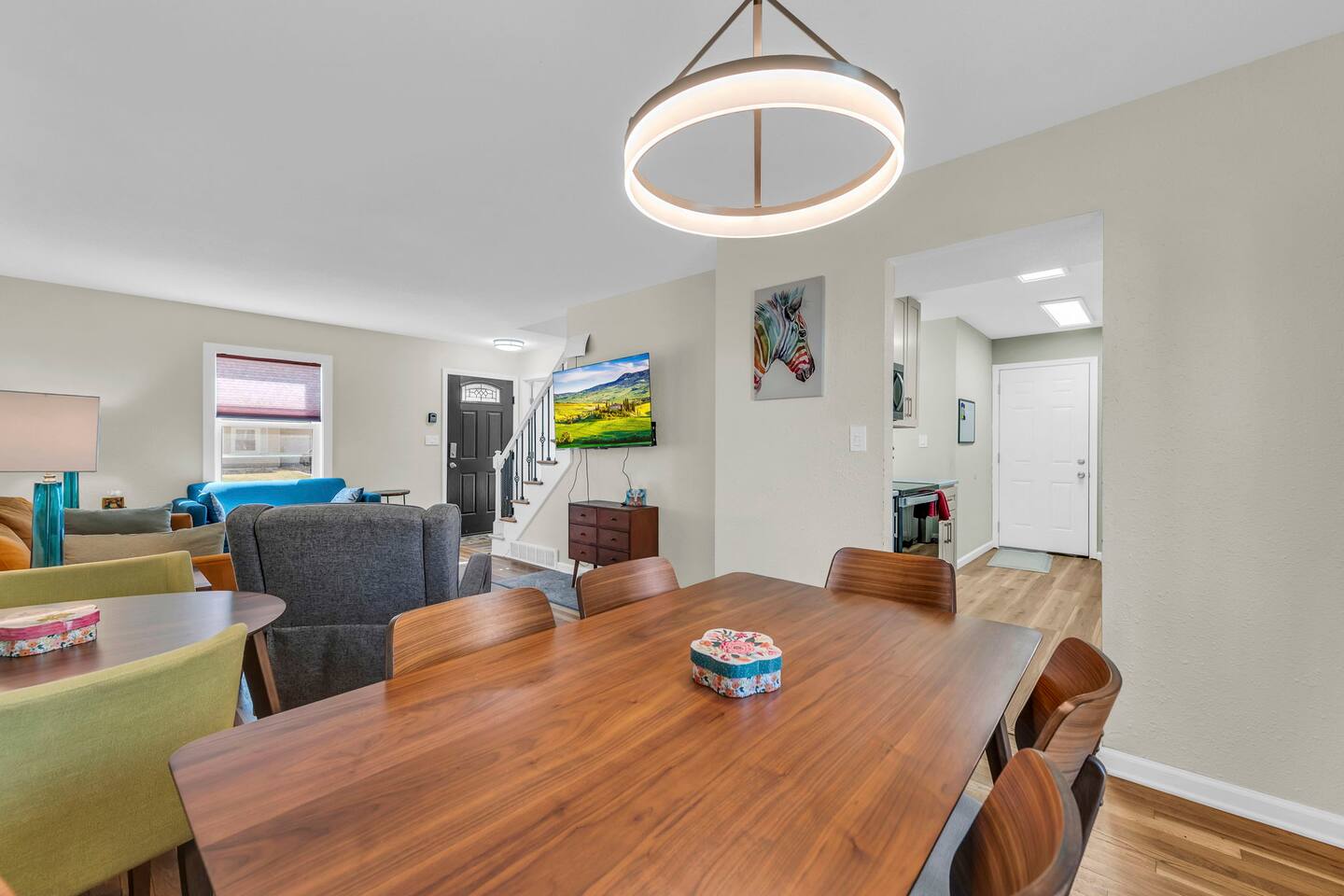 Main Level Bedroom: 1 Queen bed with easy access to the kitchen and guest bath. Upstairs: 1 King bedroom (left at the top of the stairs) 1 Queen bedroom (north-facing) 1 Bunk room with two bunk beds (Full on the bottom, Twin on top – sleeps up to 6!) 🛁 Bathrooms: 2 full baths: One upstairs and one downstairs, both with a shower and tub combo. 🎲 Epic Game Room & Entertainment: Head downstairs to your full basement hangout spot featuring: 2 Arcade Machines Board games for all ages Flat-screen TV Mini-fridge & microwave — perfect for movie snacks or poker night treats! 🧺 Laundry Room Perks: TWO washers + TWO dryers — ideal for groups and long stays. 🌳 Outdoor Living: Spacious fenced backyard perfect for pets Relaxing hot tub BBQ grill on the back porch with outdoor dining space 🚗 Parking: Driveway fits multiple vehicles Garage was converted into a game room 🐾 Pet-Friendly: Bring your furry friends! The yard is fenced and safe for pets to roam. 📍 Location Highlights: Nestled in a peaceful neighborhood, this home is just a short drive from local parks, shopping, and restaurants — but with everything you need under one roof, you may never want to leave. Book your stay now!