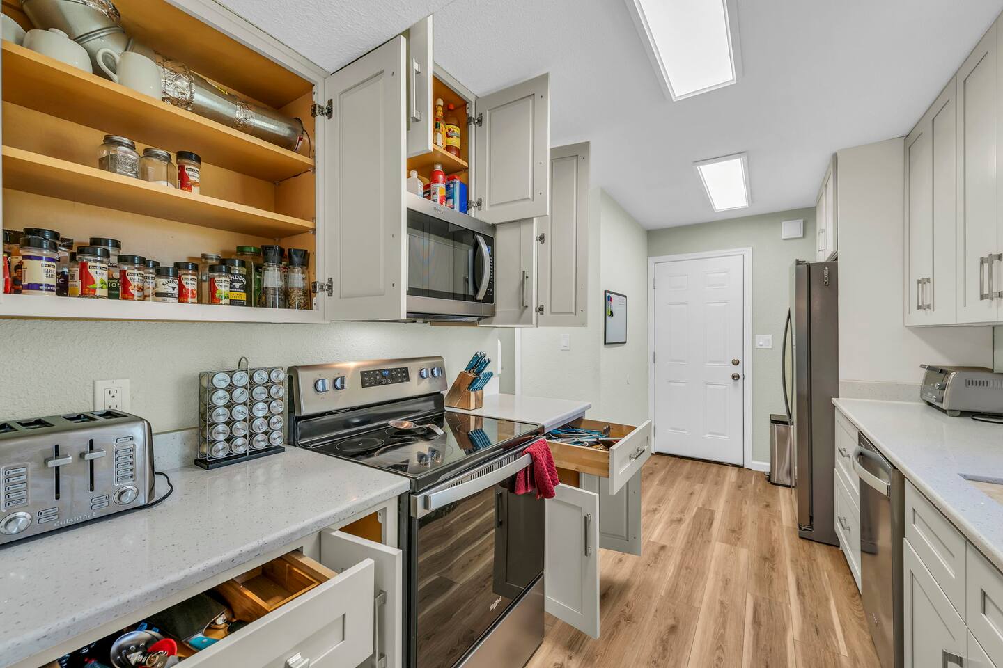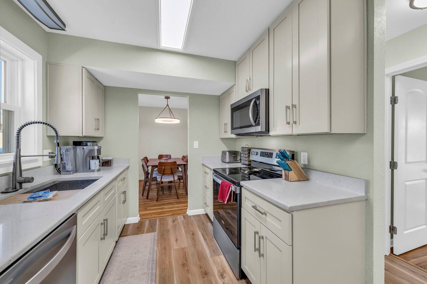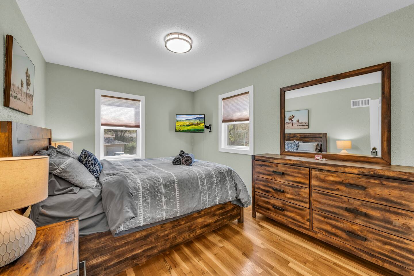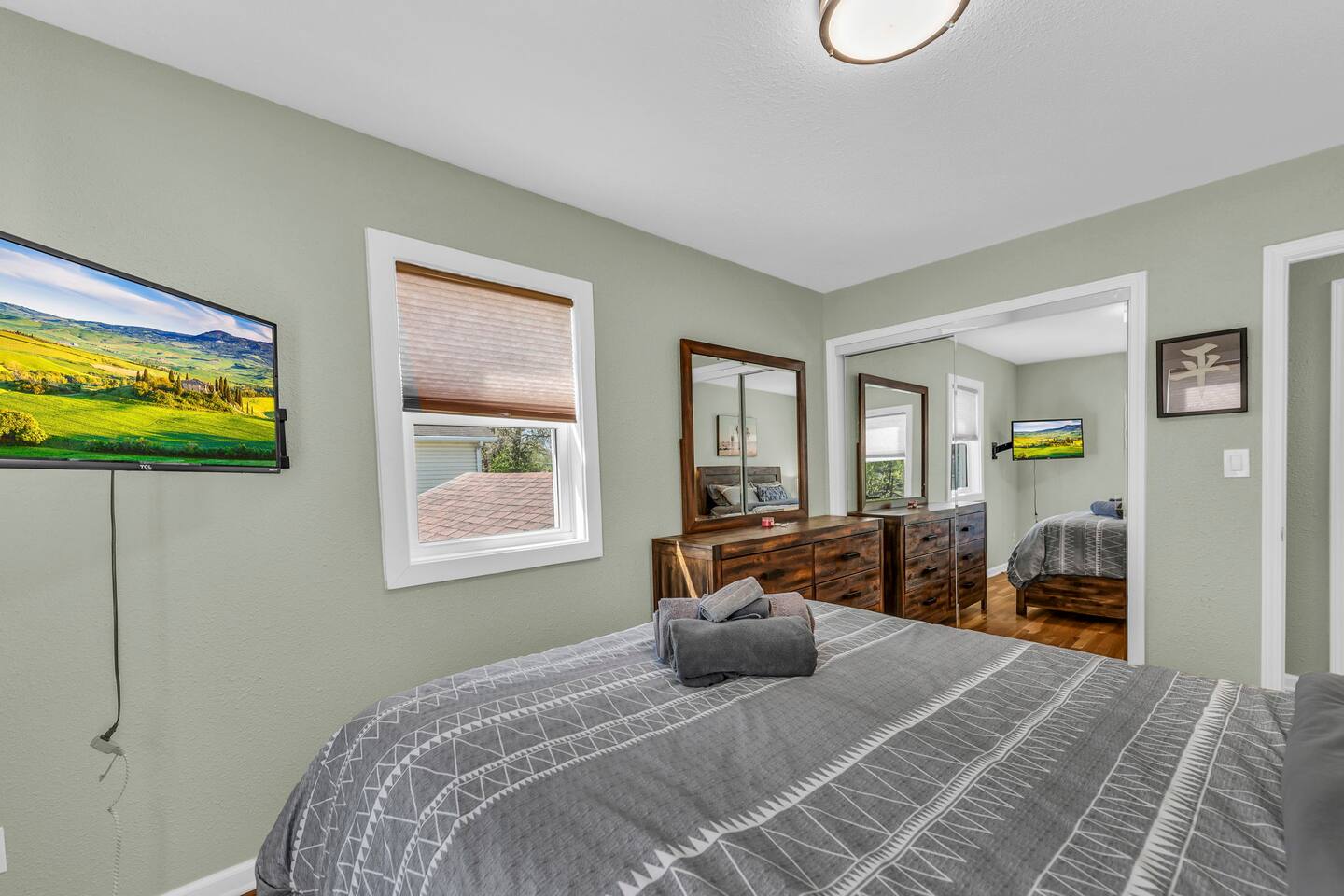 Main Level Bedroom: 1 Queen bed with easy access to the kitchen and guest bath. Upstairs: 1 King bedroom (left at the top of the stairs) 1 Queen bedroom (north-facing) 1 Bunk room with two bunk beds (Full on the bottom, Twin on top – sleeps up to 6!) 🛁 Bathrooms: 2 full baths: One upstairs and one downstairs, both with a shower and tub combo. 🎲 Epic Game Room & Entertainment: Head downstairs to your full basement hangout spot featuring: 2 Arcade Machines Board games for all ages Flat-screen TV Mini-fridge & microwave — perfect for movie snacks or poker night treats! 🧺 Laundry Room Perks: TWO washers + TWO dryers — ideal for groups and long stays. 🌳 Outdoor Living: Spacious fenced backyard perfect for pets Relaxing hot tub BBQ grill on the back porch with outdoor dining space 🚗 Parking: Driveway fits multiple vehicles Garage was converted into a game room 🐾 Pet-Friendly: Bring your furry friends! The yard is fenced and safe for pets to roam. 📍 Location Highlights: Nestled in a peaceful neighborhood, this home is just a short drive from local parks, shopping, and restaurants — but with everything you need under one roof, you may never want to leave. Book your stay now!