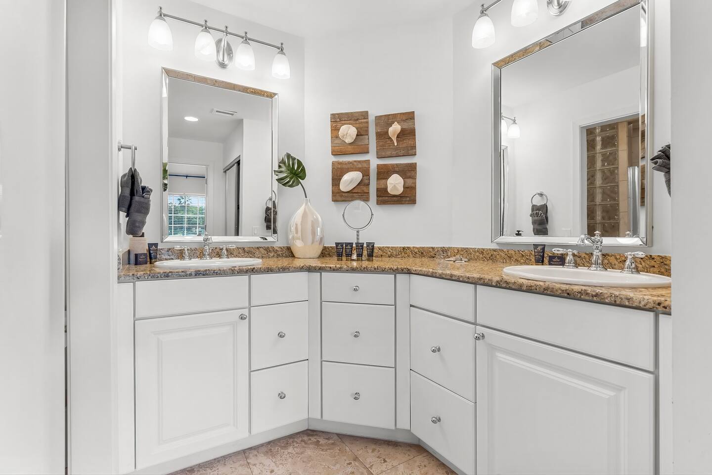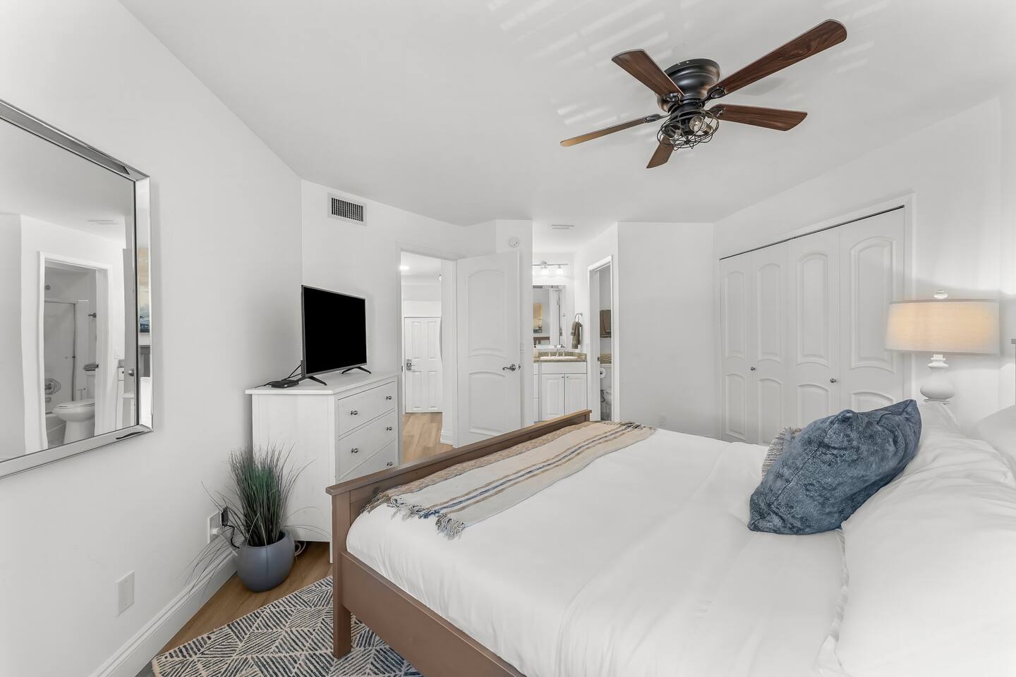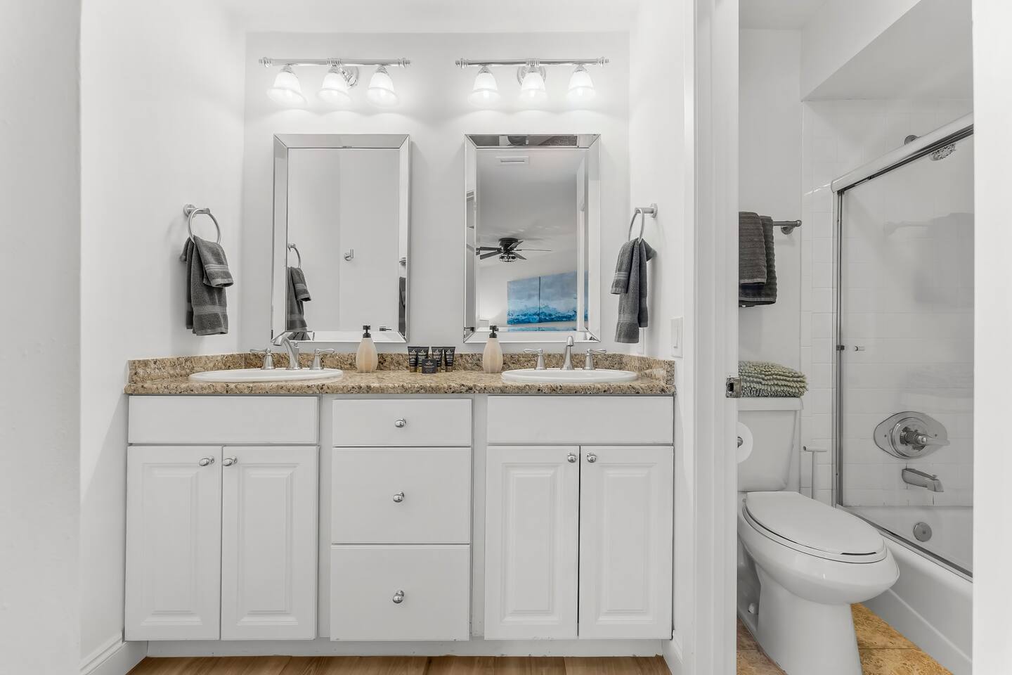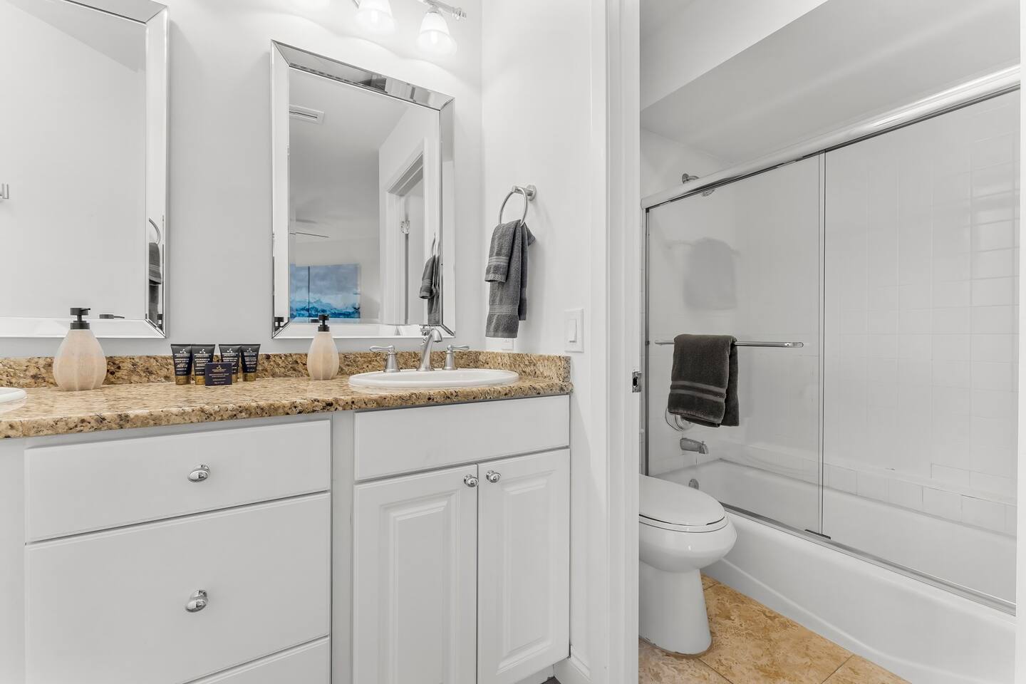 Step into comfort and coastal convenience at this spacious 4-bedroom, 3-bathroom condo, thoughtfully designed to accommodate up to 9 guests. As you enter, a stairwell welcomes you, leading to a well-appointed landing where you’ll find the “beach closet.” This space is stocked with beach essentials—chairs, mat, tent, and wakeboard—along with a towel rack to help keep sand outside where it belongs. The first bedroom at the top of the stairs features a cozy Queen bed and its own full bathroom—perfect for guests seeking privacy. Down the hallway, tucked beneath the loft stairs off the living room, is a second bedroom with a King bed and another full bath. The main master suite, located just off the living room, boasts a King bed, two closets, and a spacious private bathroom. Upstairs in the loft, the fourth bedroom offers a bunk bed (twin over full), one closet, and a charming overlook of the main living area—ideal for kids or flexible sleeping arrangements. Professionals will appreciate the small adjustable desk in the kitchen corner, which doubles as a standing or seated workspace. Guests also enjoy access to the community pool ,and a refundable $500 deposit secures the use of the golf cart (driver’s license required). ✔Bedroom 1 (Top of stairs, right): Queen bed Full private bathroom ✔Bedroom 2 (Down hallway, under loft stairs): King bed Full private bathroom ✔Main Master Bedroom (Off living room): King bed 2 closets Full private bathroom ✔Bedroom 4 / Loft: Bunk bed (Twin over Full) 1 closet ✔The Phil Hummel Aquatic Center Pool is heated and open all year-round. It's the perfect place to take a dip or get your laps in. Also features zero entrance fee for little ones.