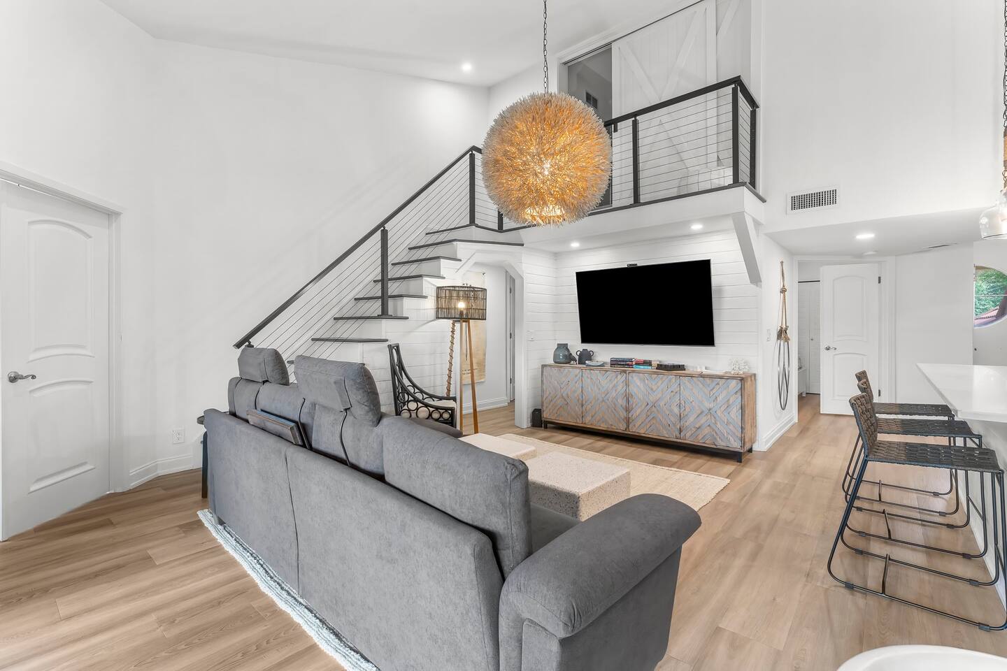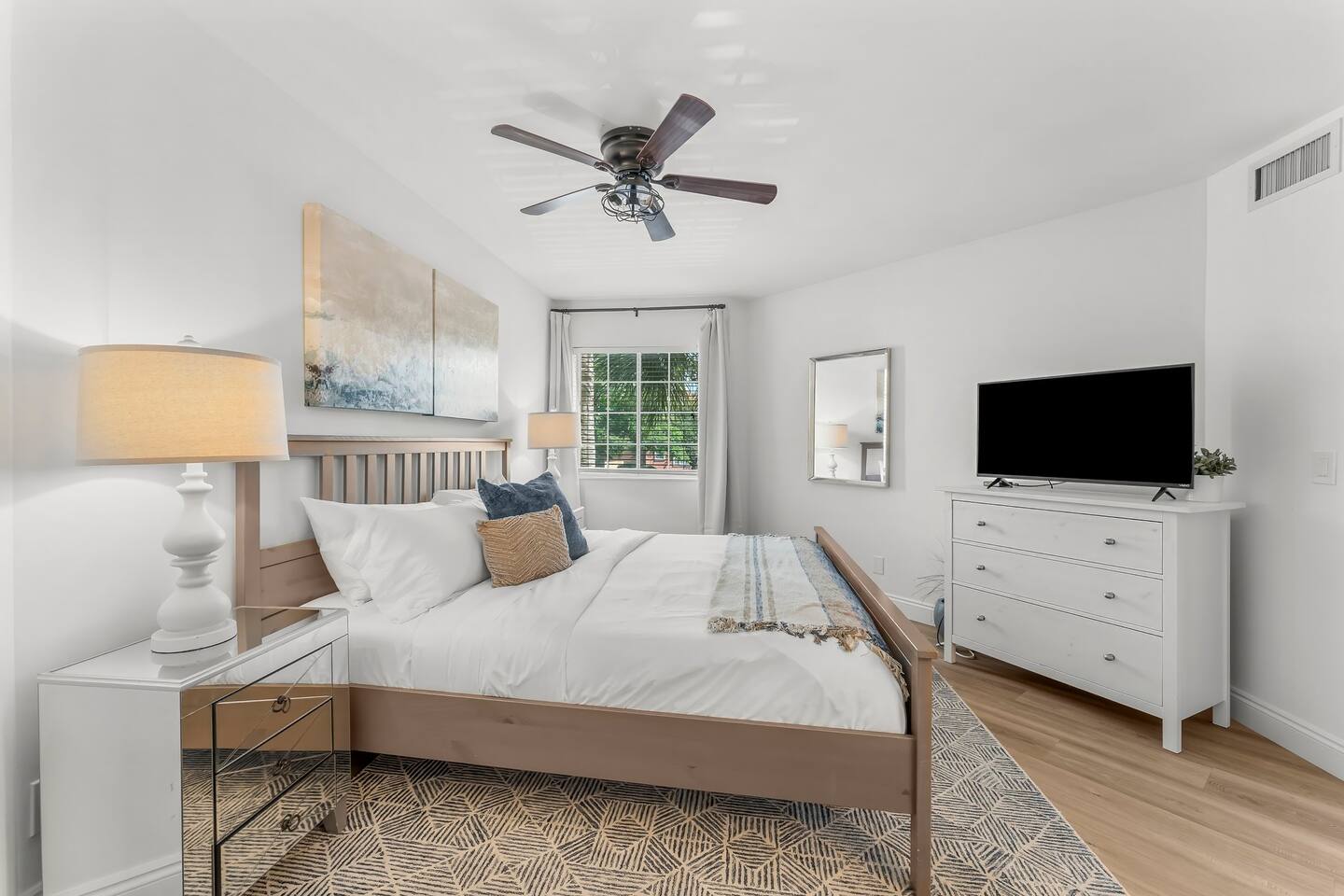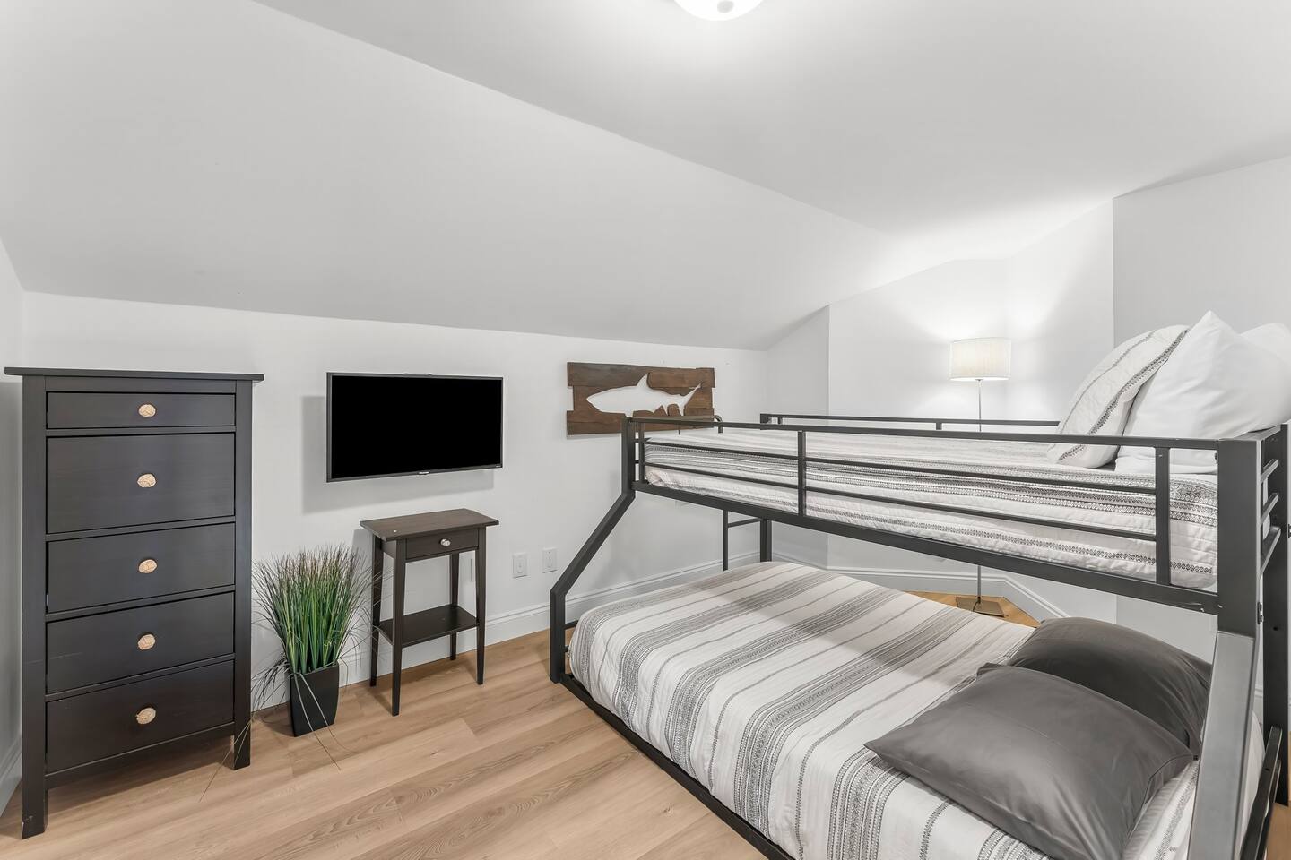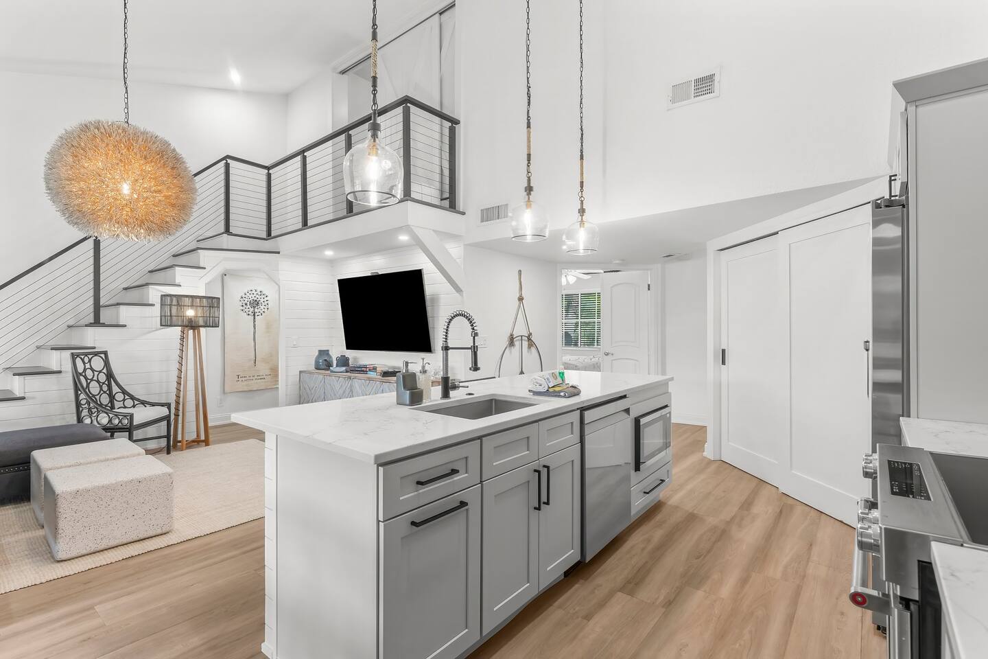 Step into comfort and coastal convenience at this spacious 4-bedroom, 3-bathroom condo, thoughtfully designed to accommodate up to 9 guests. As you enter, a stairwell welcomes you, leading to a well-appointed landing where you’ll find the “beach closet.” This space is stocked with beach essentials—chairs, mat, tent, and wakeboard—along with a towel rack to help keep sand outside where it belongs. The first bedroom at the top of the stairs features a cozy Queen bed and its own full bathroom—perfect for guests seeking privacy. Down the hallway, tucked beneath the loft stairs off the living room, is a second bedroom with a King bed and another full bath. The main master suite, located just off the living room, boasts a King bed, two closets, and a spacious private bathroom. Upstairs in the loft, the fourth bedroom offers a bunk bed (twin over full), one closet, and a charming overlook of the main living area—ideal for kids or flexible sleeping arrangements. Professionals will appreciate the small adjustable desk in the kitchen corner, which doubles as a standing or seated workspace. Guests also enjoy access to the community pool ,and a refundable $500 deposit secures the use of the golf cart (driver’s license required). ✔Bedroom 1 (Top of stairs, right): Queen bed Full private bathroom ✔Bedroom 2 (Down hallway, under loft stairs): King bed Full private bathroom ✔Main Master Bedroom (Off living room): King bed 2 closets Full private bathroom ✔Bedroom 4 / Loft: Bunk bed (Twin over Full) 1 closet ✔The Phil Hummel Aquatic Center Pool is heated and open all year-round. It's the perfect place to take a dip or get your laps in. Also features zero entrance fee for little ones.