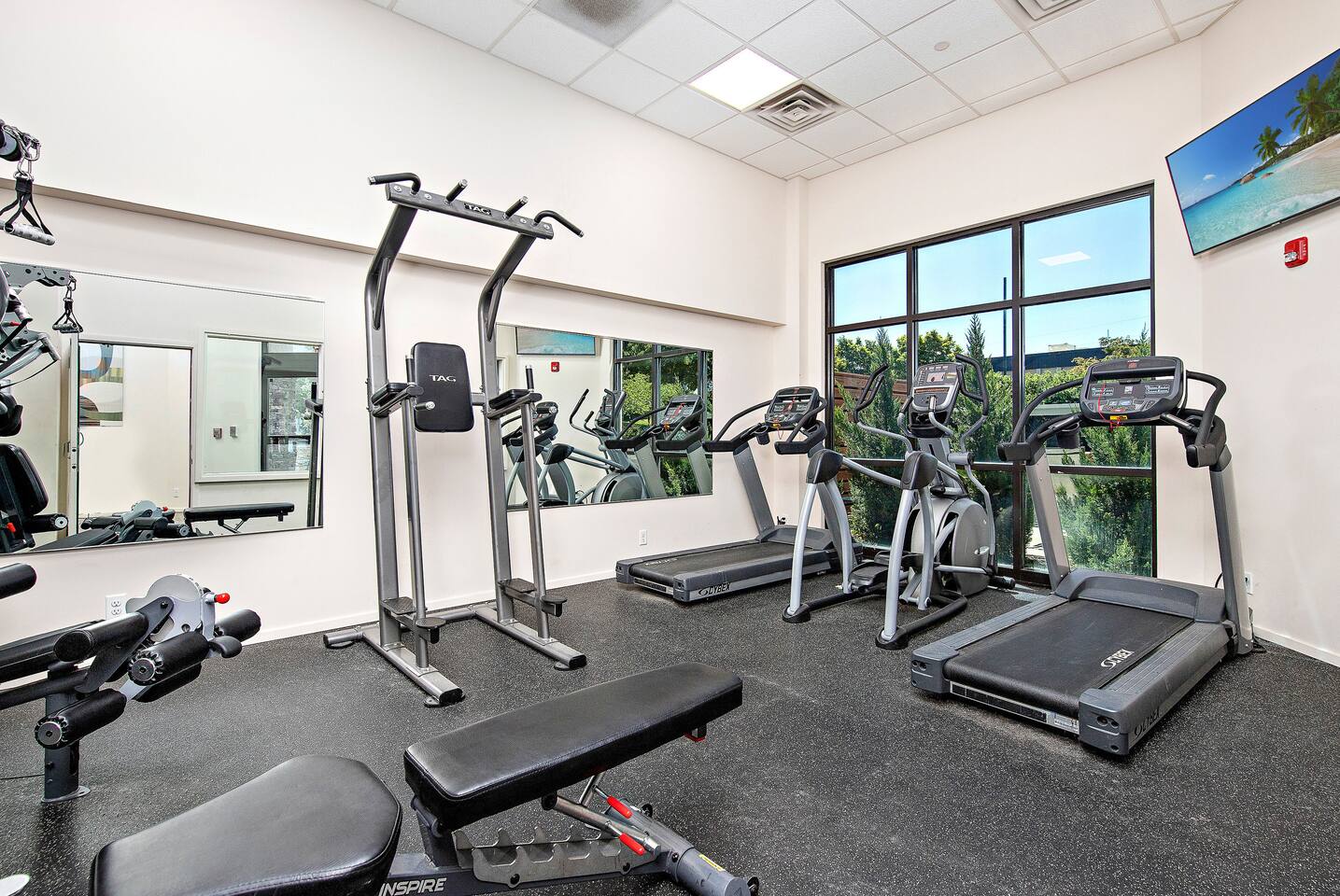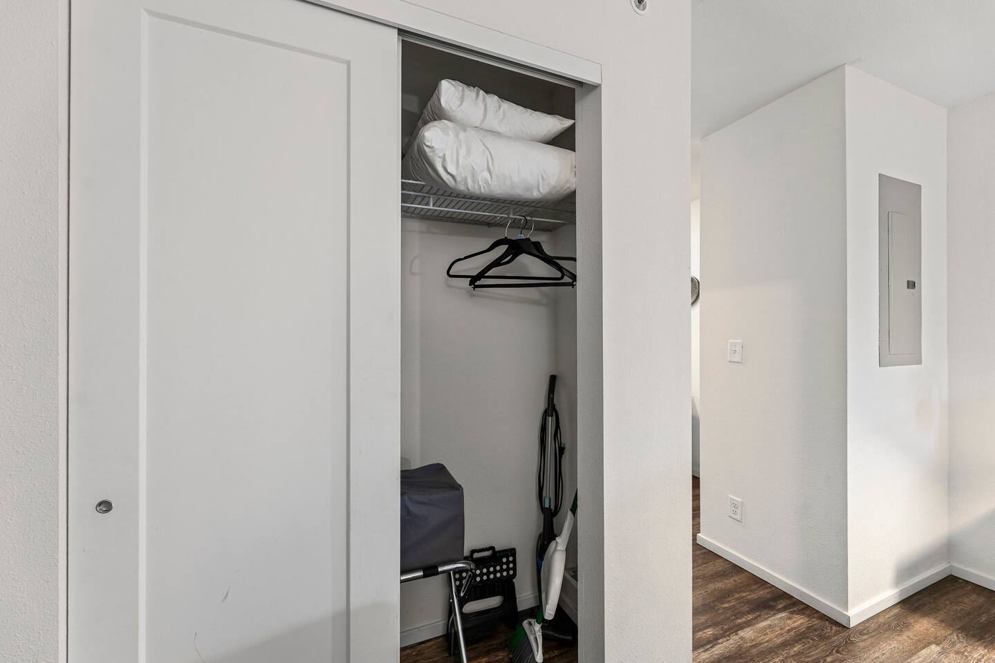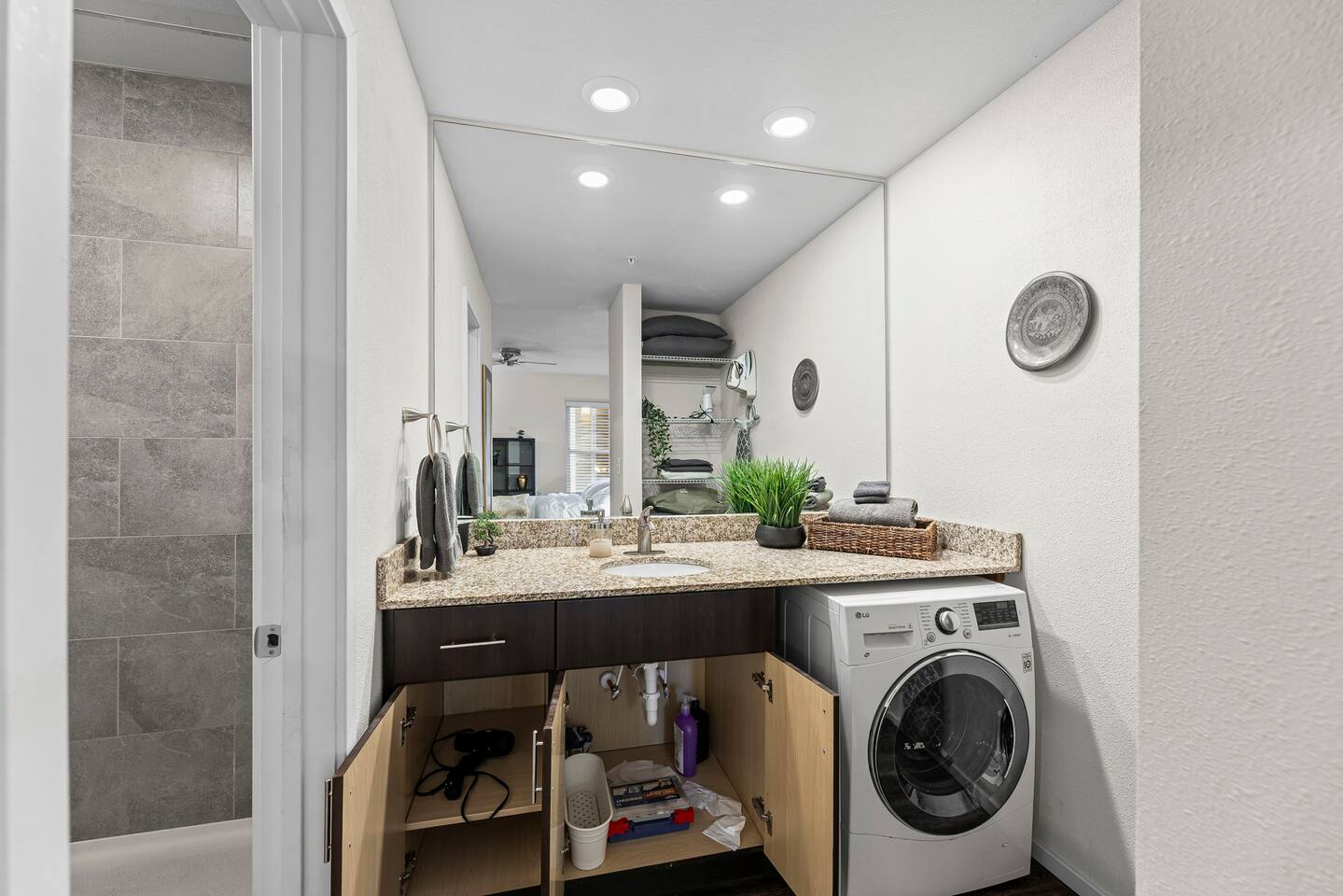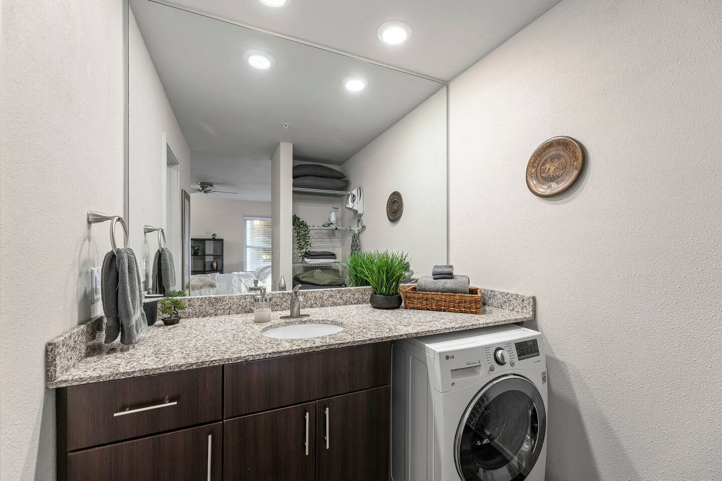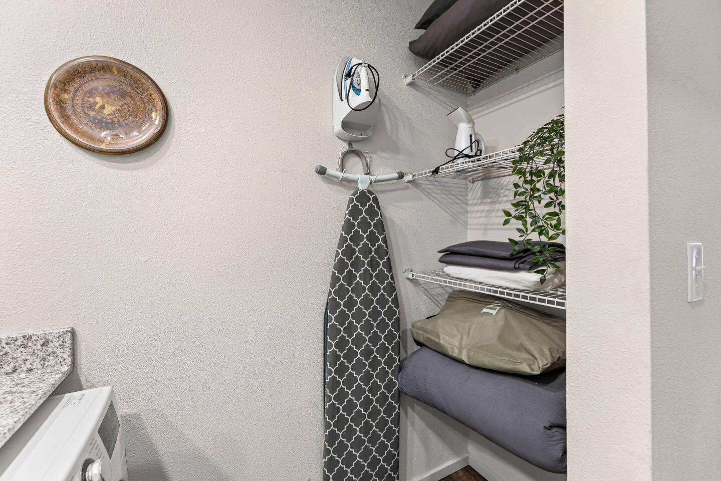 Welcome to The Suite Spot, a modern 1BR retreat with private covered parking just steps from your door. Enjoy a cozy living area with a sleek electric fireplace, 55" Roku TV, a dedicated laptop workstation, and full kitchen with granite counters and stainless appliances. The plush king bed, workspace, and fast WiFi make it ideal for work or rest. Outside, enjoy the lounge w/ TV, BBQ grill, & sun chairs. Dog park & gym access too. Stylish, convenient, and peaceful—your perfect home base awaits!