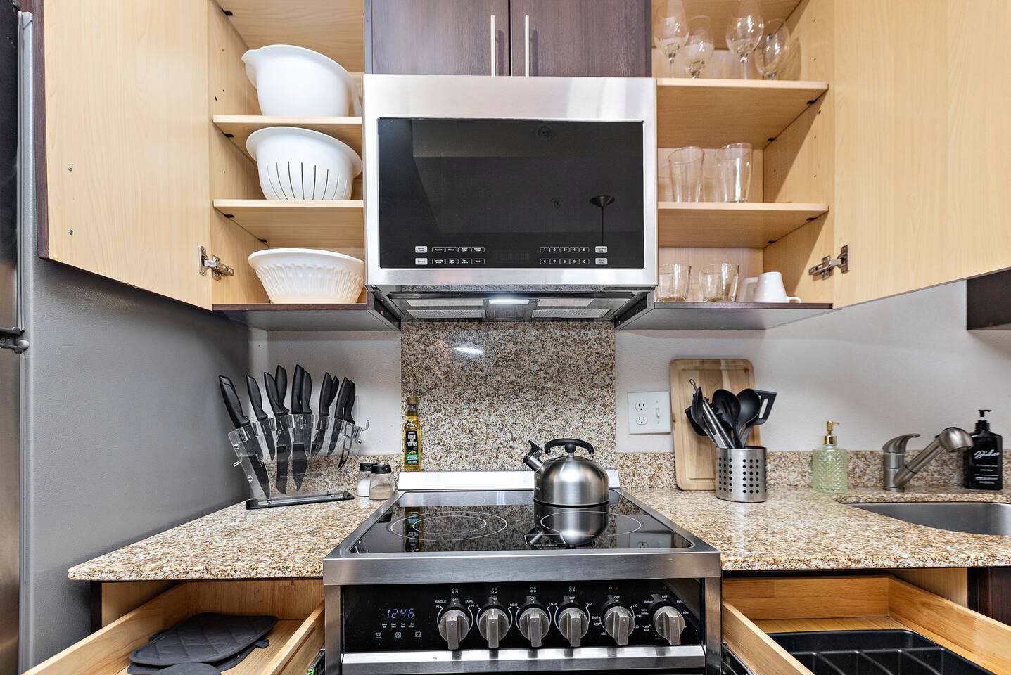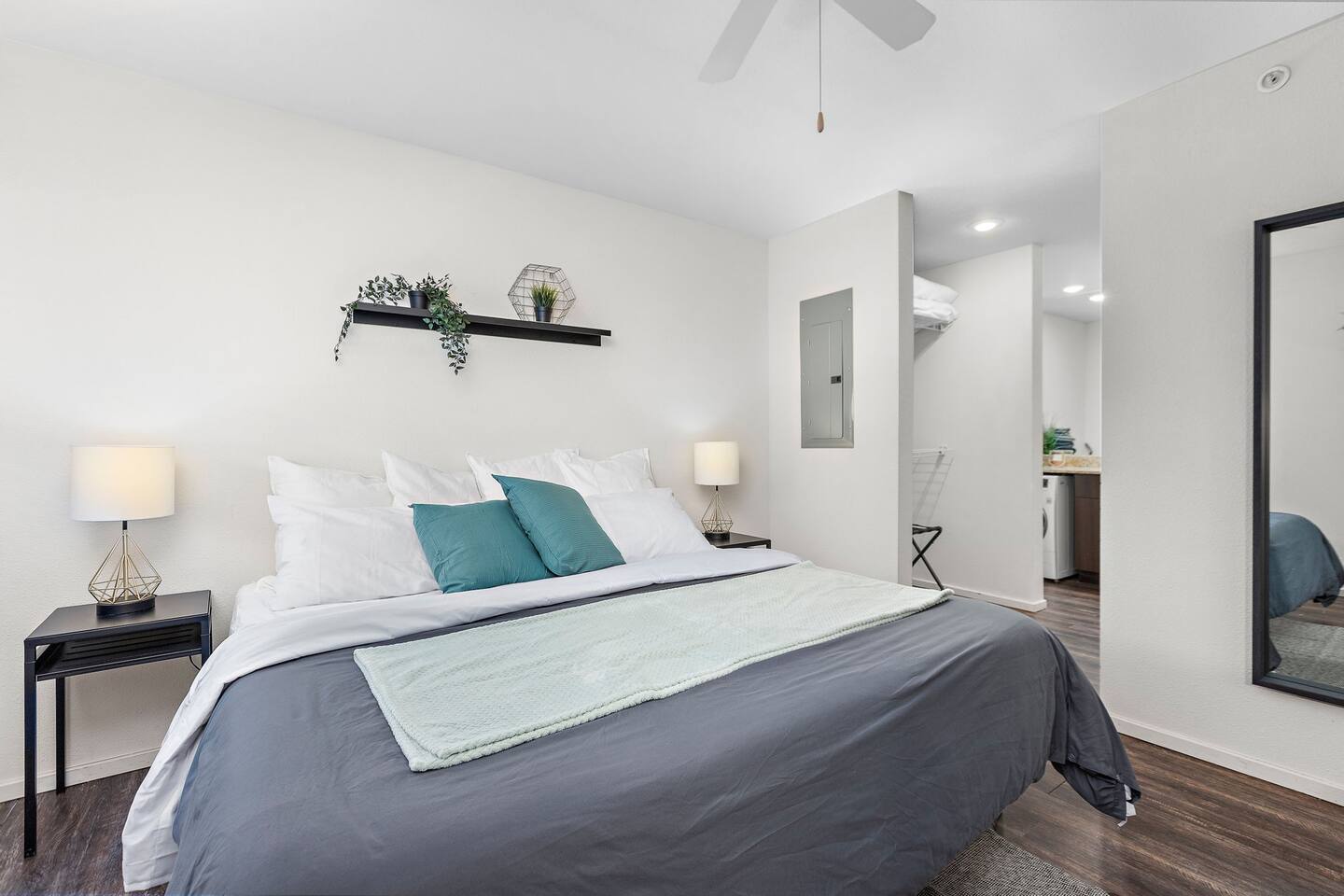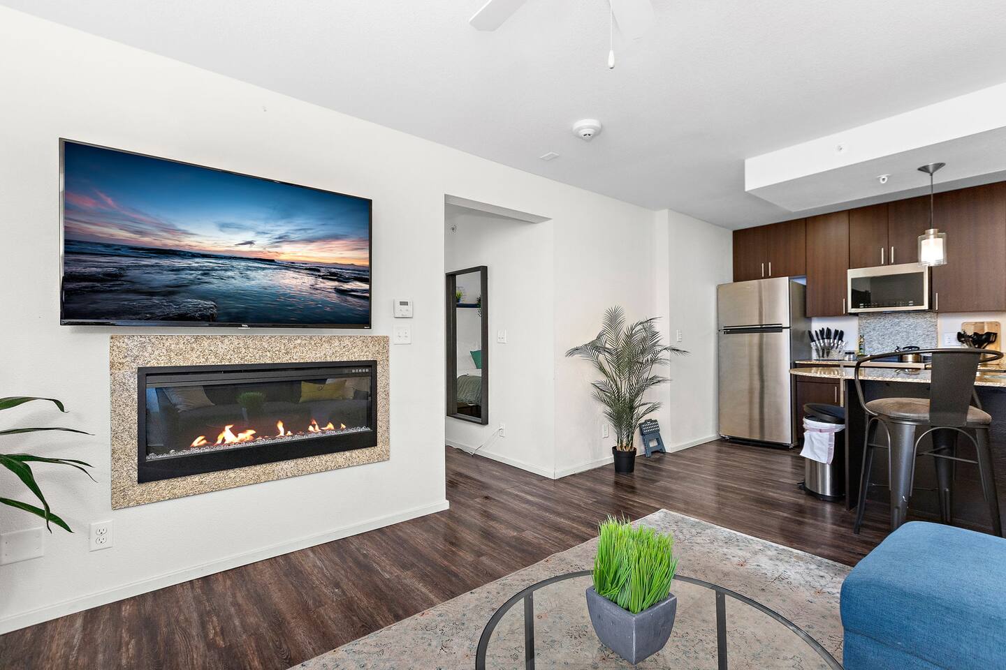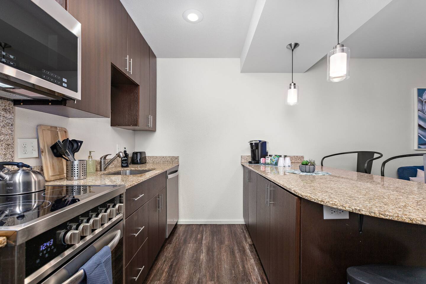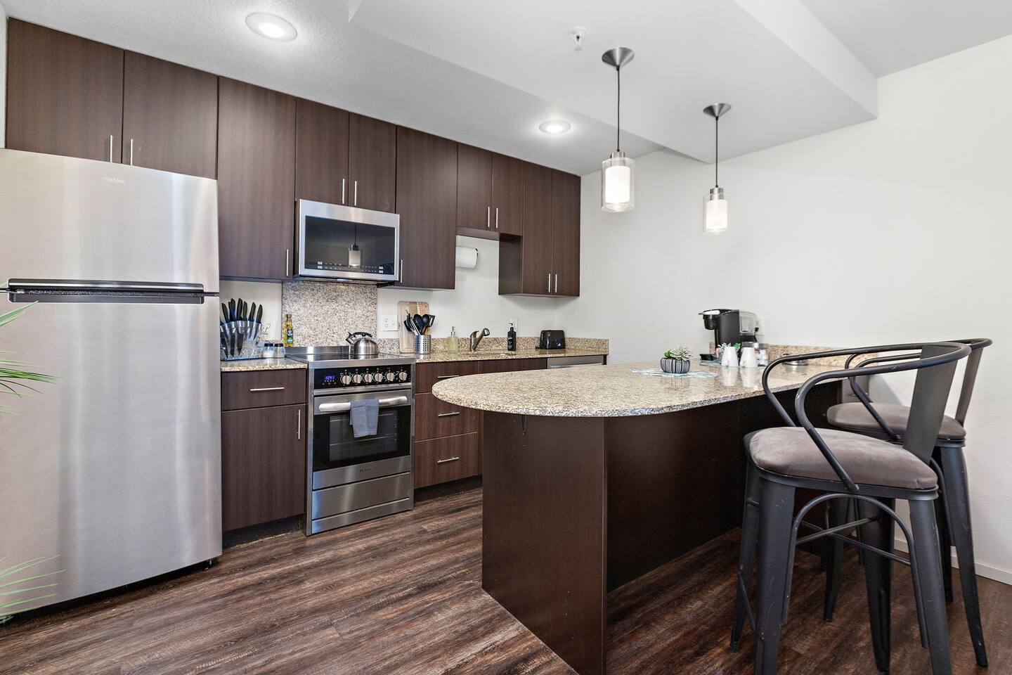 ✔Experience contemporary comfort in this light-filled, modern one-bedroom apartment. ✔The open-concept design creates a sleek and inviting atmosphere, perfect for both relaxation and productivity. ✔The space features a dedicated workspace, ensuring you have the convenience of a home office. Located centrally, this ground-floor apartment offers easy access and comes with its own covered parking spot. ✔Immerse yourself in a stylish and functional living space, providing the comforts you need for a delightful stay. Key Features: • Bedroom: 1 (Queen-size bed) • Bathroom: 1 • Amenities: Wi-Fi, Fully equipped kitchen, and a dedicated workspace with monitor and printer readily available for use during stay. • Location: Prime city location with easy access to all attractions. • Modern Living: Embrace the convenience of a fully equipped kitchen, perfect for whipping up delicious meals. The apartment is complemented by a contemporary bathroom. • City Living at its Best: Located in the heart of the city, you're just steps away from the vibrant energy of downtown life. Explore local cafes, trendy boutiques, and a variety of dining options right at your doorstep. • Connectivity and Comfort: Stay connected with complimentary Wi-Fi and make the most of the urban lifestyle. This apartment is designed for those who appreciate the hustle and bustle of city living while enjoying the comfort of a well-appointed space. • Ideal for Explorers: Whether you're here for business or pleasure, this apartment puts you in the center of it all. Easy access to public transportation and major highways allows you to explore the city's attractions, cultural venues, and nightlife with ease. Don't miss the opportunity to experience the allure of city living in this stylish 1-bedroom apartment. Contact us today and make this urban retreat your next home! ✔ This property offers a spacious layout, with an approximate size of 487-500 sq ft.