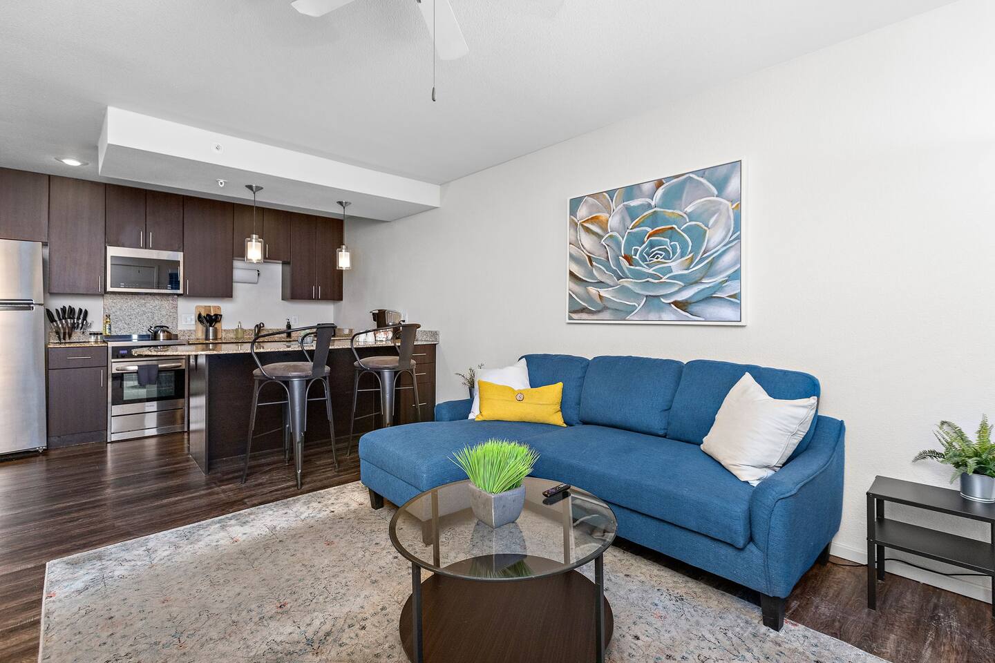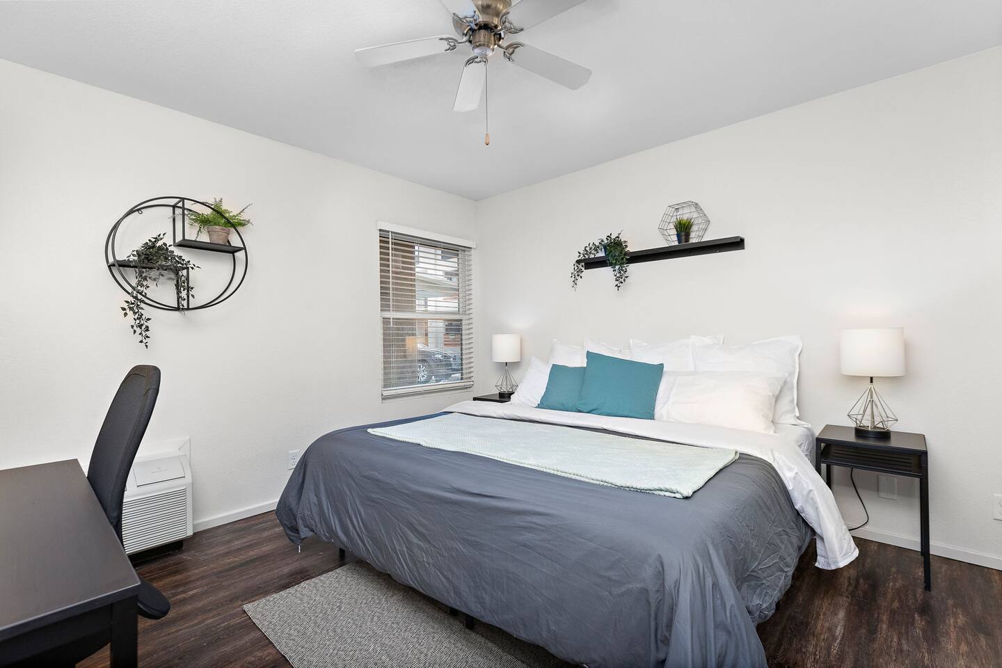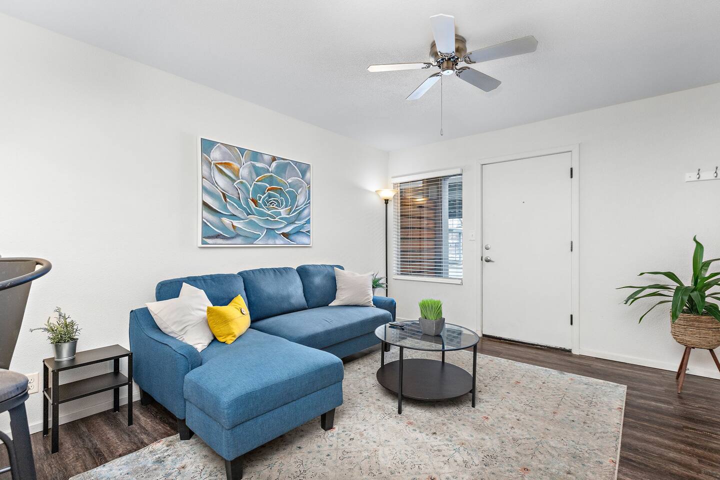 Step into our sleek and modern one-bedroom apartment, featuring a light-filled open-concept place. Centrally located, this space offers a dedicated workspace within the apartment. Enjoy the convenience of a covered parking spot right in front of this ground-floor unit. Discover the perfect blend of style and convenience in this contemporary living space.