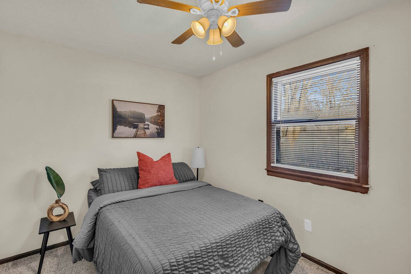 This inviting 2-bedroom, 1-bath home offers a warm and welcoming space for your stay in Baldwin City. With two queen-size beds, a fully equipped kitchen featuring modern appliances, and a cozy living room designed for relaxation, this home has everything you need for a comfortable getaway. Whether you're here for a family visit, a romantic retreat, or a small group trip, you'll find the perfect blend of style and convenience to make your stay enjoyable.