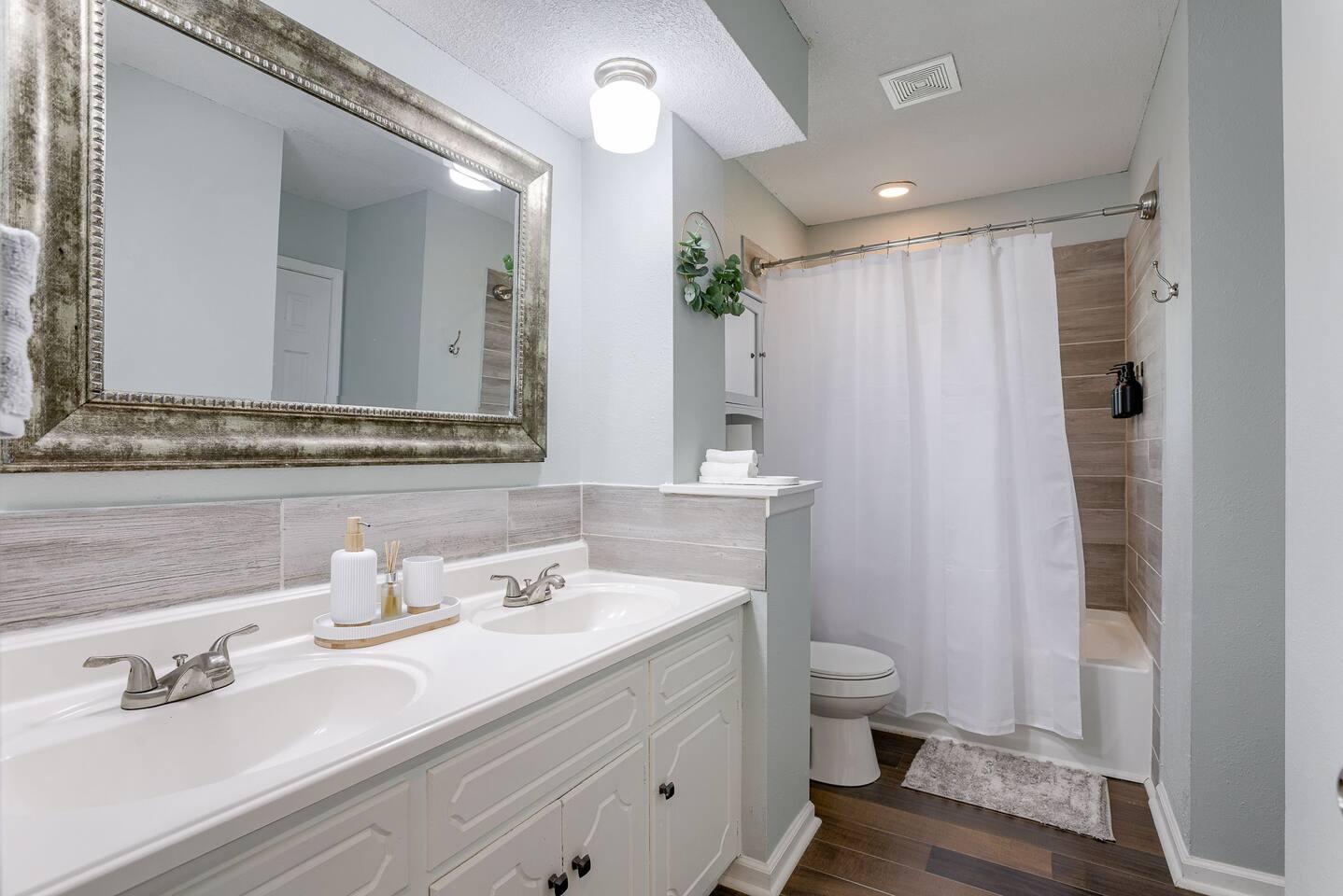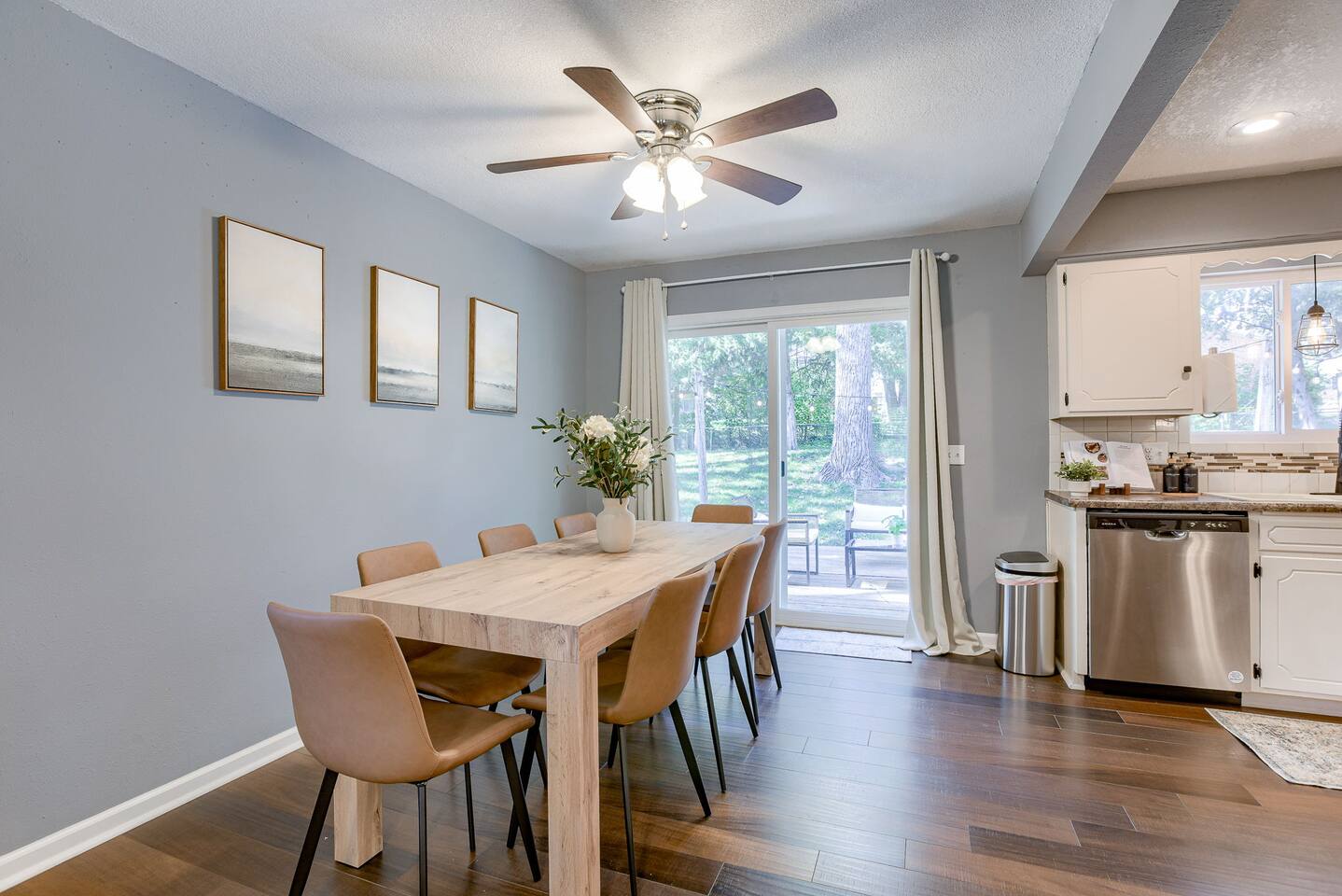 Welcome to this charming split-level home featuring 3 bedrooms, with queen and king size bed , 1.5 bathrooms, and a spacious dining area with seating for 8. The house also includes a washer and dryer for your convenience. Enjoy the outdoor patio in the back, perfect for relaxing. The property boasts a wide driveway and a 2-car garage, offering plenty of parking space. Ideal for families or groups seeking a comfortable and welcoming stay! Book our place now! Come and enjoy your stay!