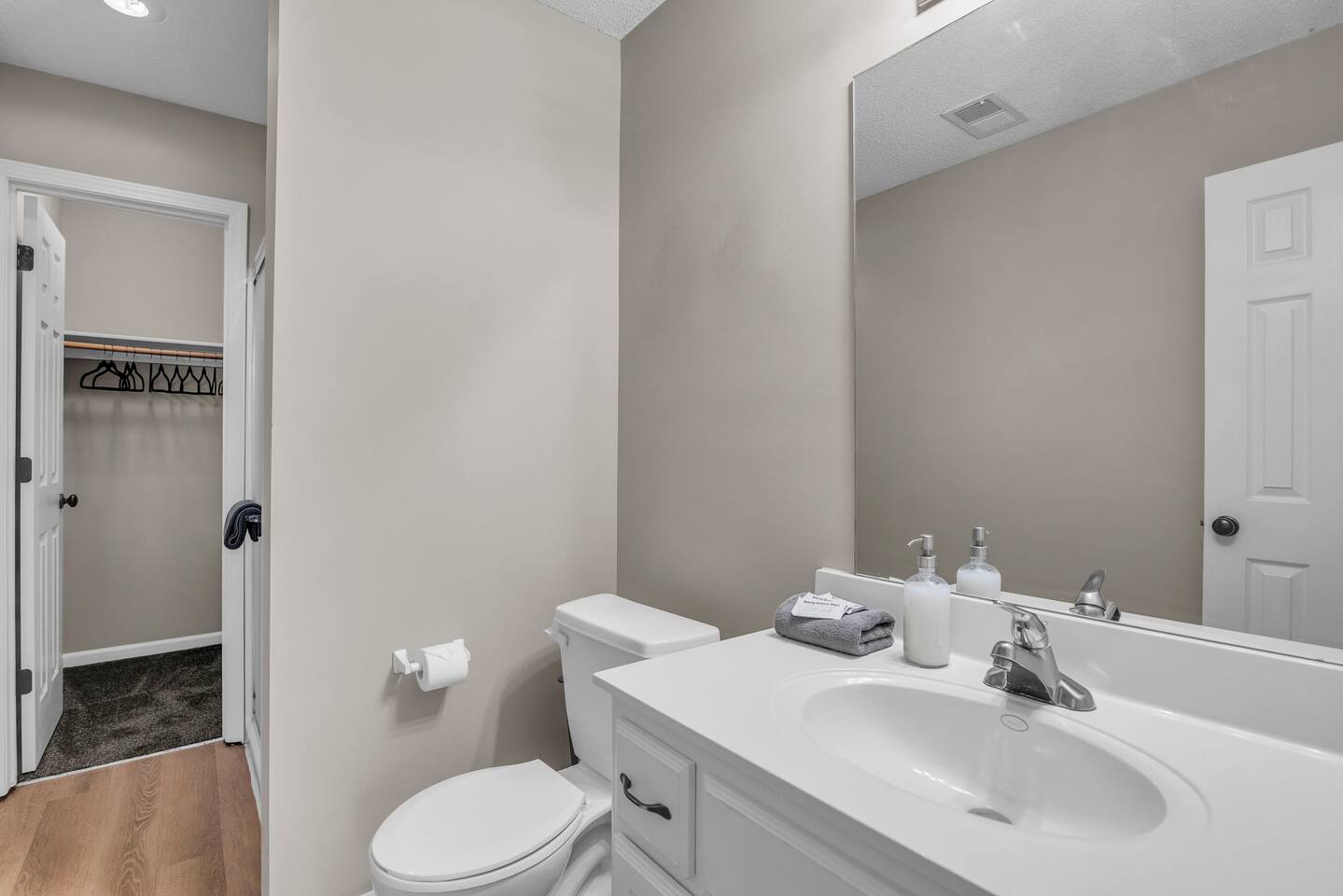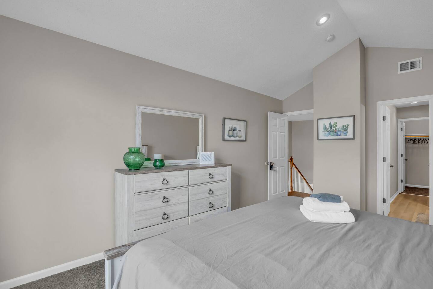 🛏️ 3 Bedrooms – Comfortable beds with quality linens 🛁 2.5 Bathrooms – Full baths plus a convenient half bath ~ One bedroom is located in the basement and includes its own private full bathroom, offering added privacy and convenience. ~ The main floor has a full bathroom conveniently located by the kitchen. ~ Upstairs, you’ll find two bedrooms, one of which includes a half bathroom for added comfort. 🍳 Kitchen – Fully equipped with modern appliances - features a breakfast bar with two stools 📺 Living Area – Two cozy sofas, smart TV, and natural light 🚗 Parking – Garage and driveway parking included 🌿 Outdoor Space – Private patio with a grill 🧺 Washer & Dryer – In-unit for longer stays 📍 Location – Easy access to restaurants, highways, and local attractions Whether you're here for work, vacation, or visiting family, this home has everything you need for a relaxing and hassle-free stay. ✨ Book now for a clean, cozy, and convenient experience!