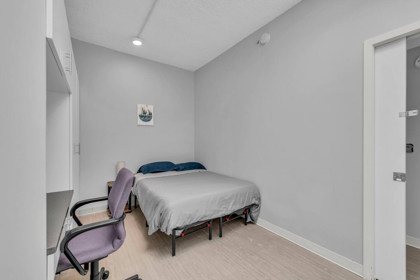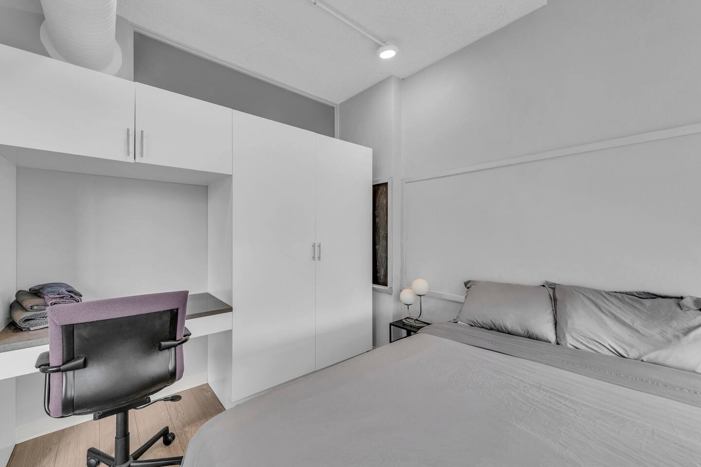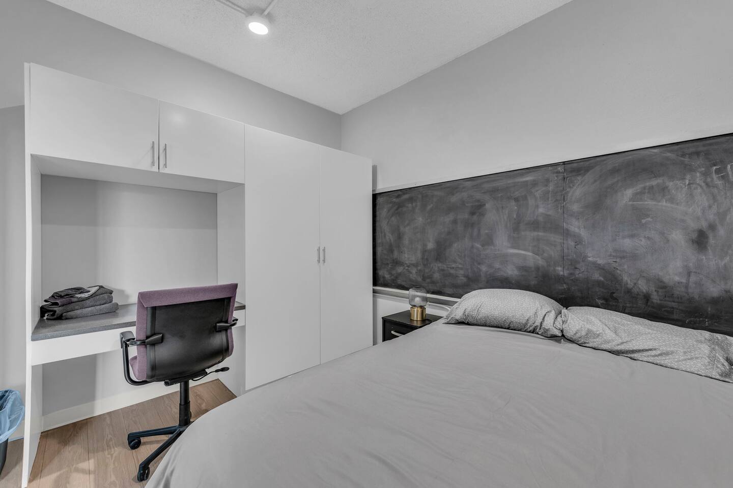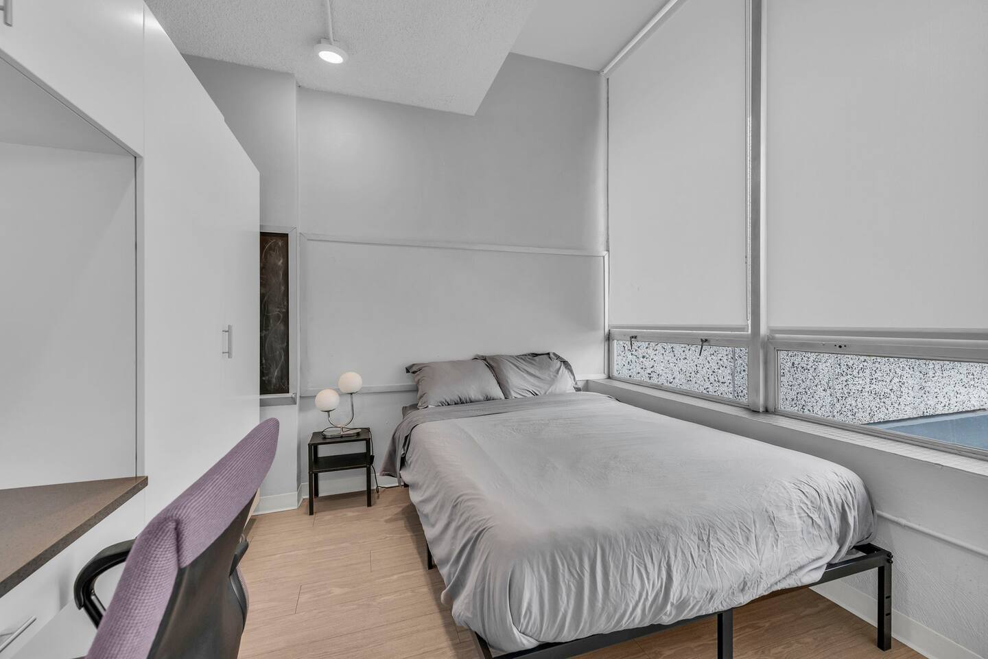 This clean and modern 4-bedroom pod-style apartment is perfect for students, professionals, and traveling workers. Each guest has their own private room with a queen bed and a work/study table. The unit includes a shared kitchen, living space, and a bathroom. It’s affordable, comfortable, and in a convenient location close to schools, hospitals, and public transport. Book your stay today!