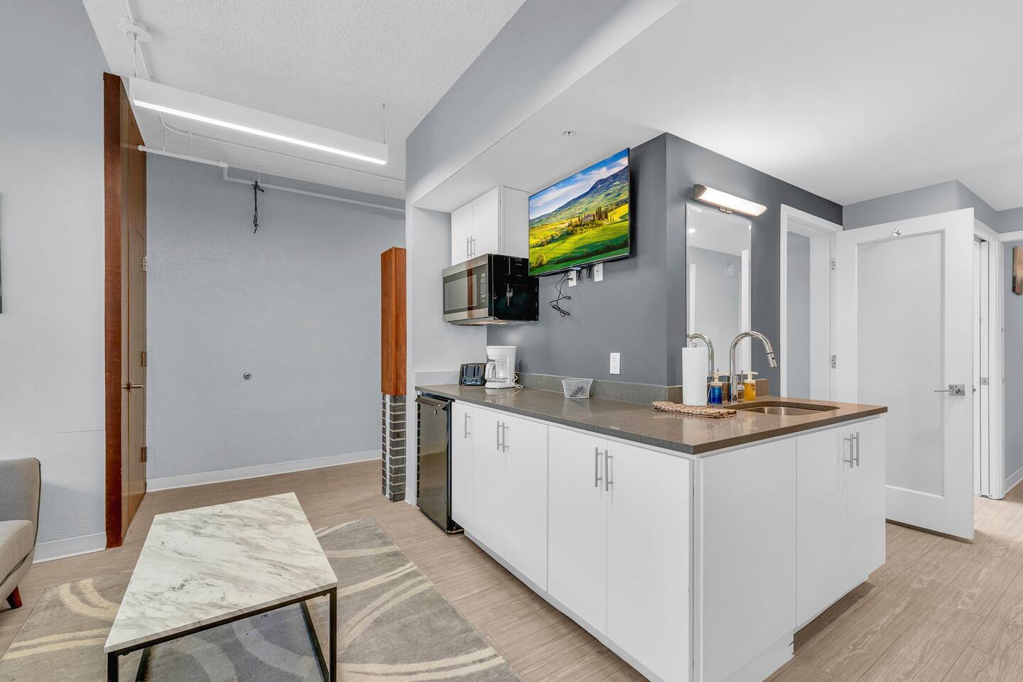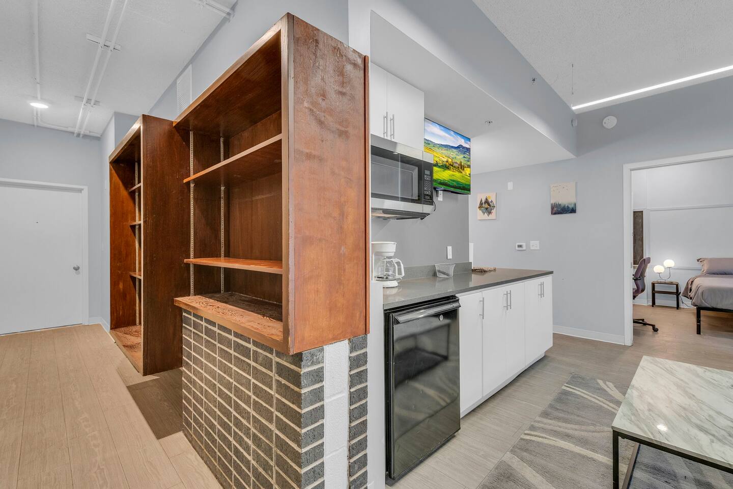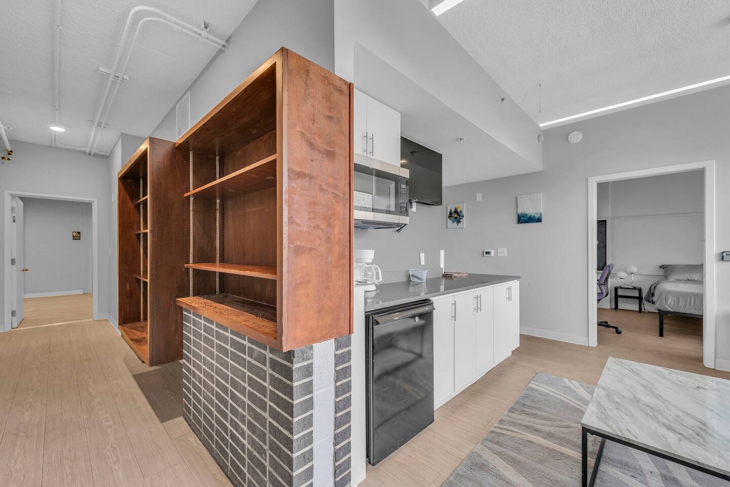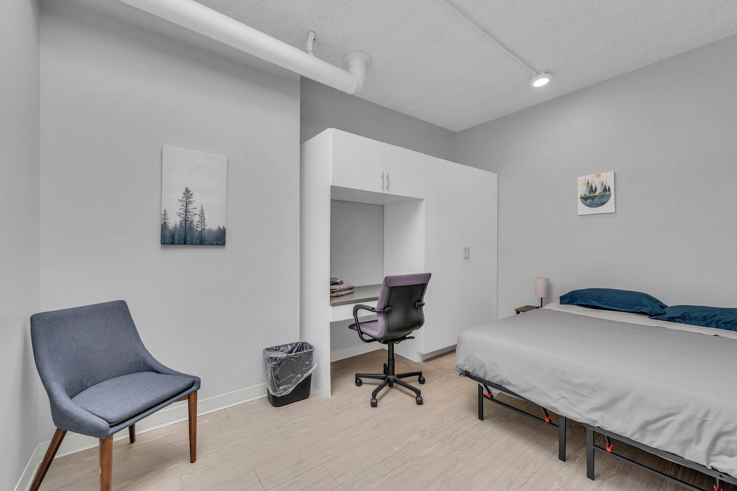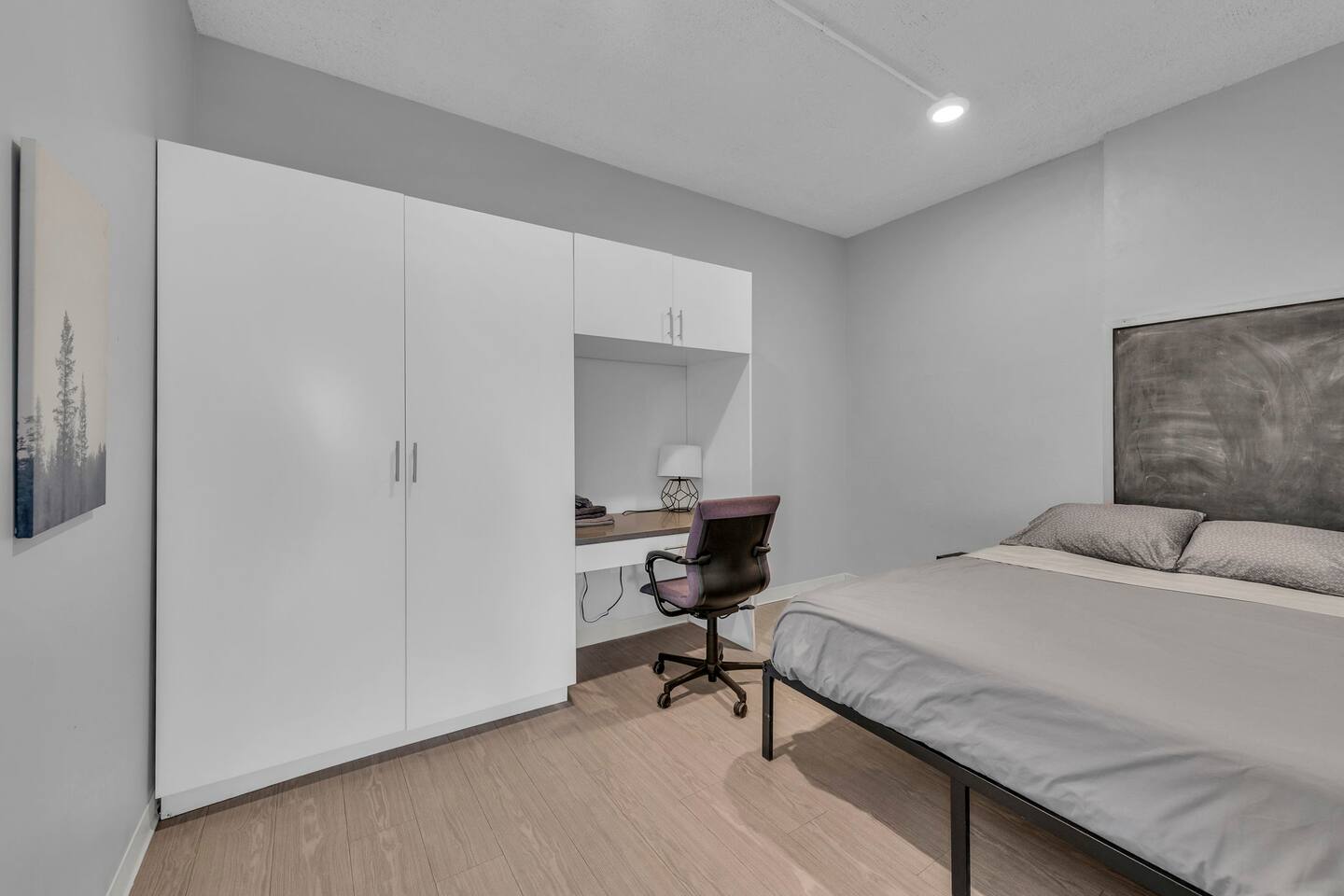 This clean and modern 4-bedroom pod-style apartment is perfect for students, professionals, and traveling workers. Each guest has their own private room with a queen bed and a work/study table. The unit includes a shared kitchen, living space, and a bathroom. It’s affordable, comfortable, and in a convenient location close to schools, hospitals, and public transport. Book your stay today!