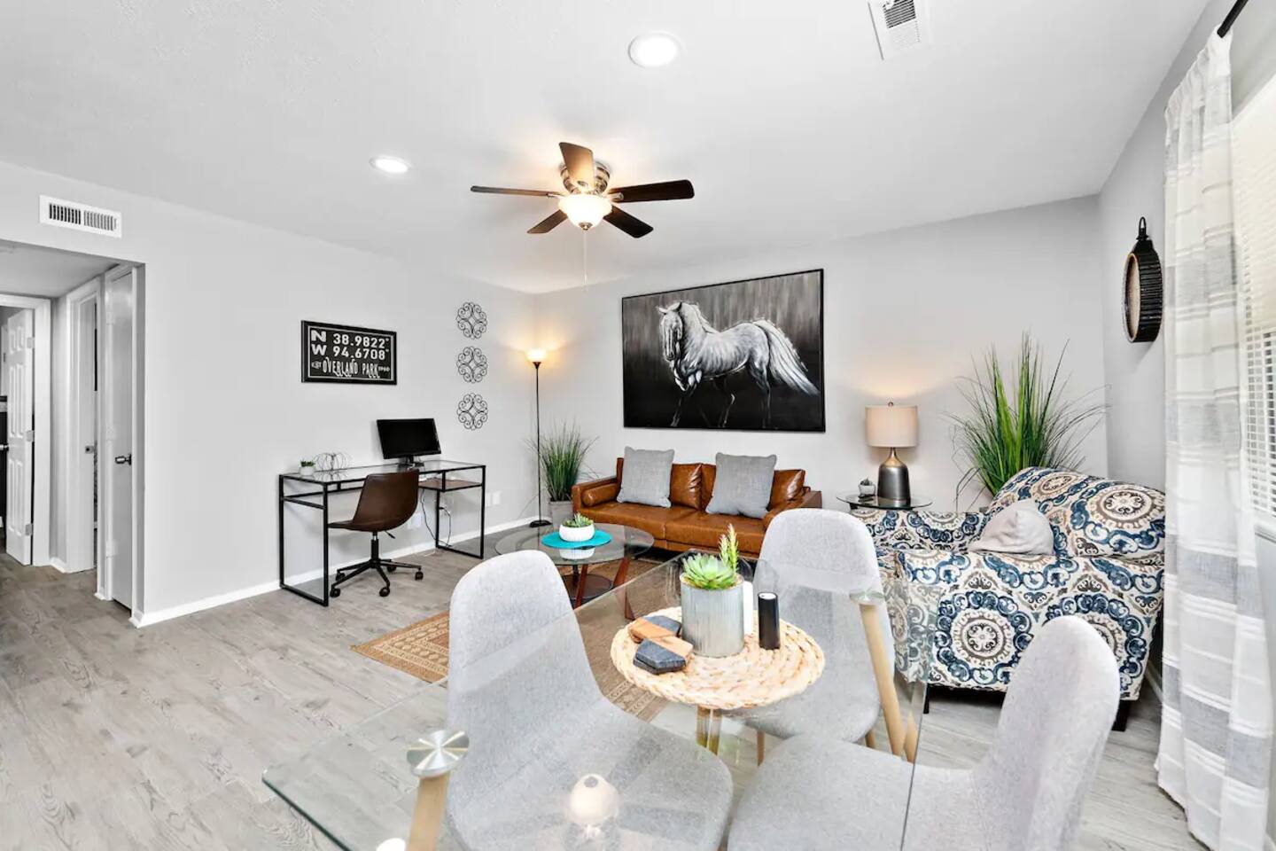 What You’ll Love: ✔Two Cozy Bedrooms – One with a king bed and another with a queen bed, both with soft linens for a restful sleep. ✔Spacious Living Room – Unwind on plush seating and enjoy your favorite shows on the large smart TV. ✔Fully Equipped Kitchen – Cook with ease using modern appliances and all essential cookware. ✔1.5 Bathrooms – A full bath with a shower/tub combo plus an additional half bath for convenience. ✔Fast Wi-Fi – Stay connected for work, streaming, or sharing your travel moments. ✔Great Location – Easy access to local dining, shopping, and attractions. This cozy and stylish retreat is perfect for any stay! Book now and enjoy the best of Lawrence!