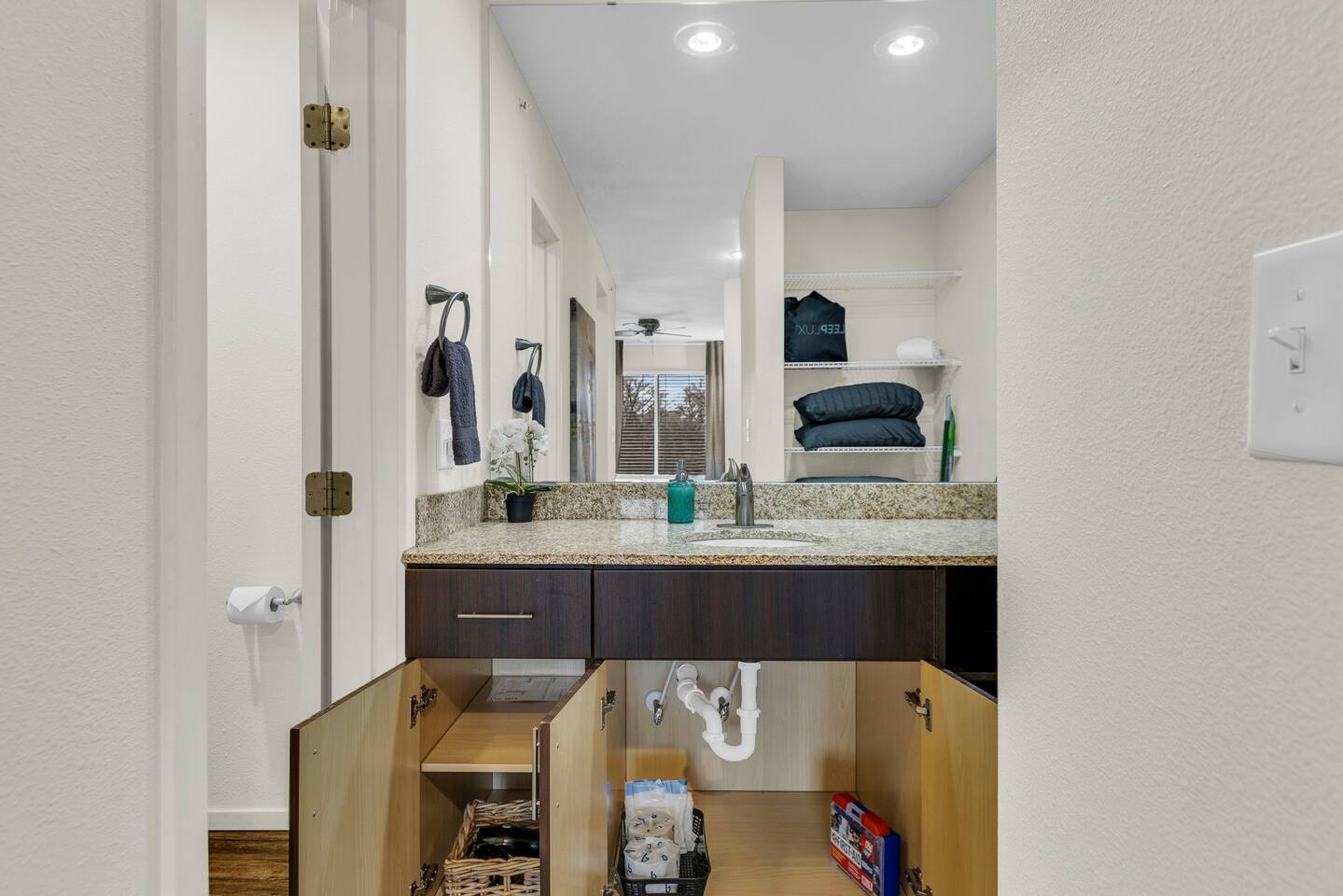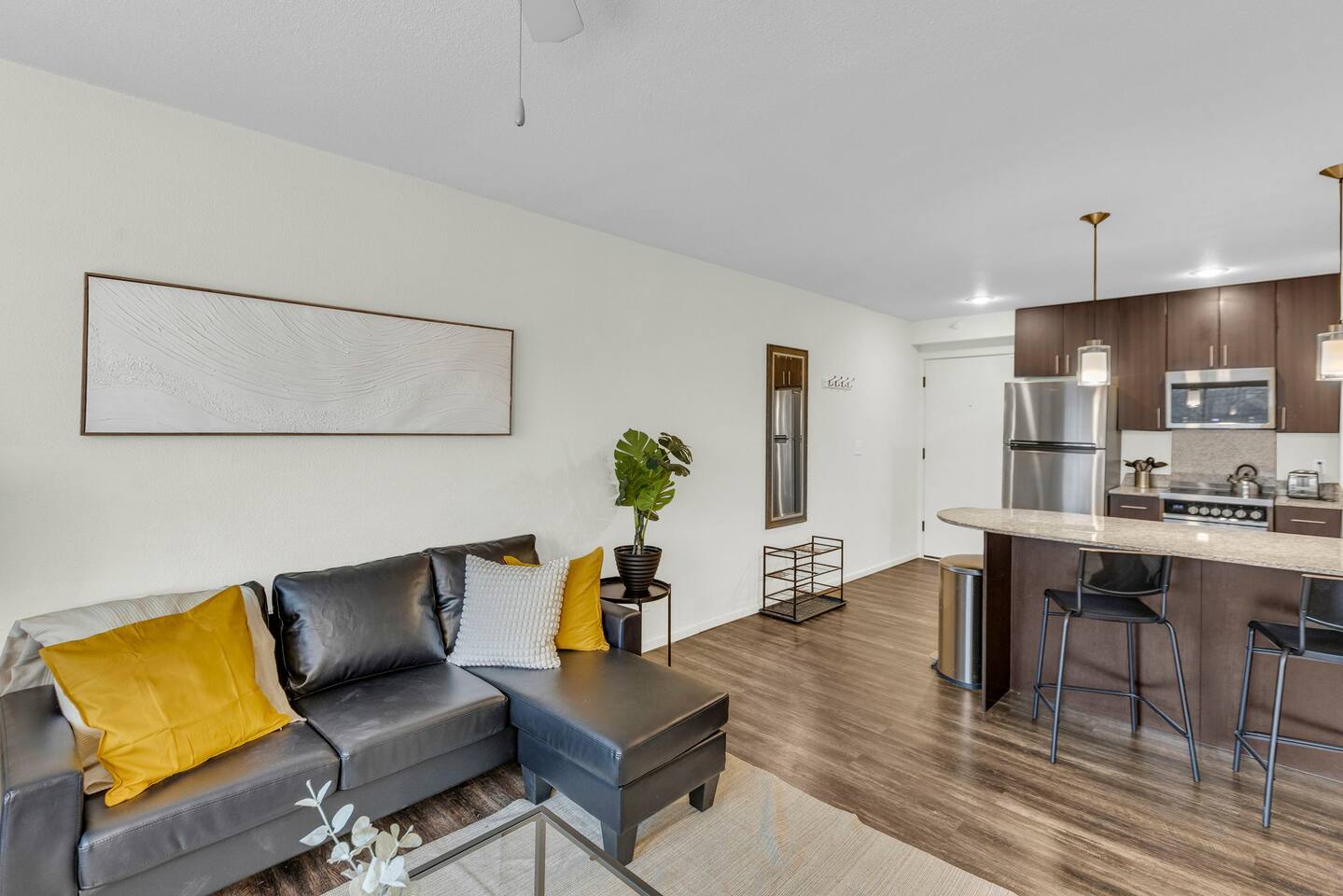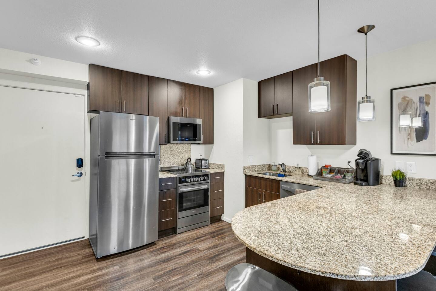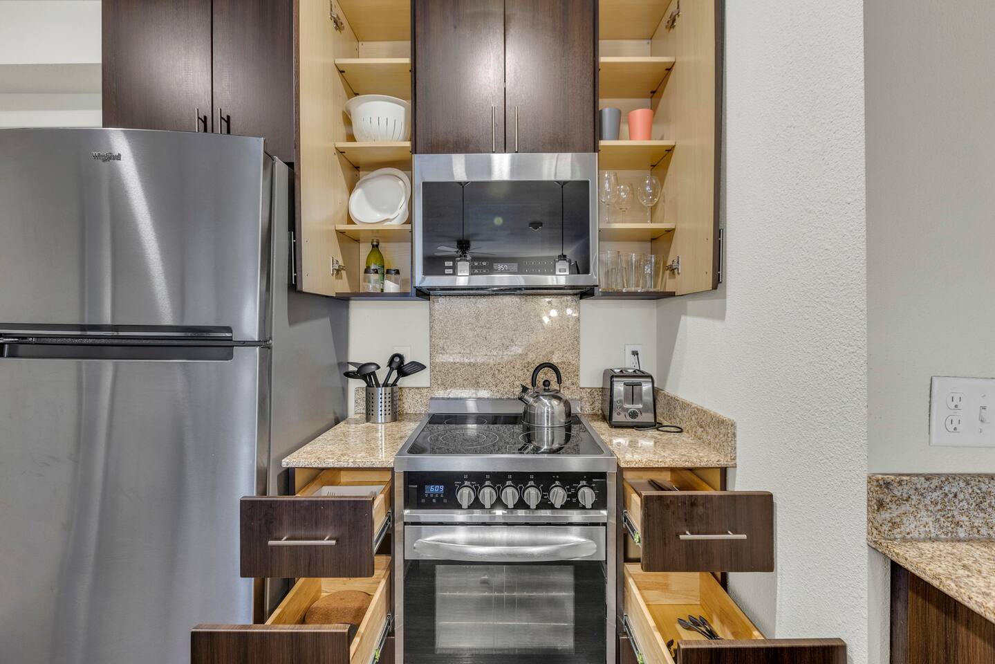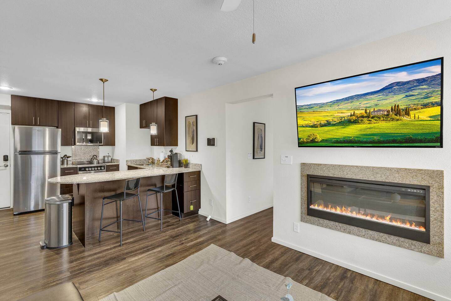 What You'll Love: Spacious Living Area: Relax and unwind in a bright, comfortable living room with plenty of seating and a flat-screen TV. Ideal for a movie night or quiet relaxation. It has a queen-sized airbed on the shelves by the bathroom vanity that can sleep an additional 2 guests. Fully Equipped Kitchen: Prepare your favorite meals with ease! The kitchen includes modern appliances, a coffee maker, and all the essentials to make your stay feel like home. Cozy Bedroom: A peaceful retreat with a comfy queen-size bed, soft linens, and plenty of closet space for your things. Stylish Bathroom: Fresh towels, toiletries, and a clean, modern bathroom with a shower/tub combo for your convenience. Free High-Speed Wi-Fi: Stay connected for work or fun with reliable and fast internet throughout the apartment. Free Parking: No need to worry about street parking. Convenient, on-site parking right outside the building. Air Conditioning: Stay cool and comfortable during your stay, no matter the season. ✔ This property offers a spacious layout, with an approximate size of 487-500 sq ft.
